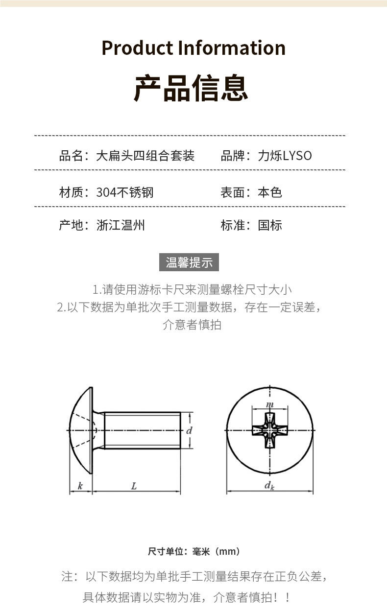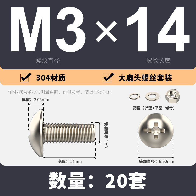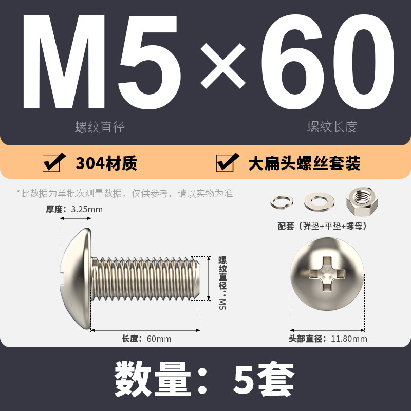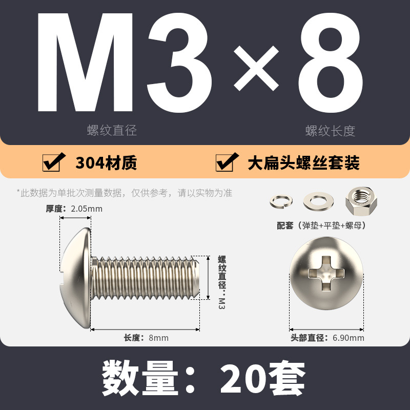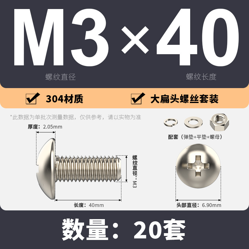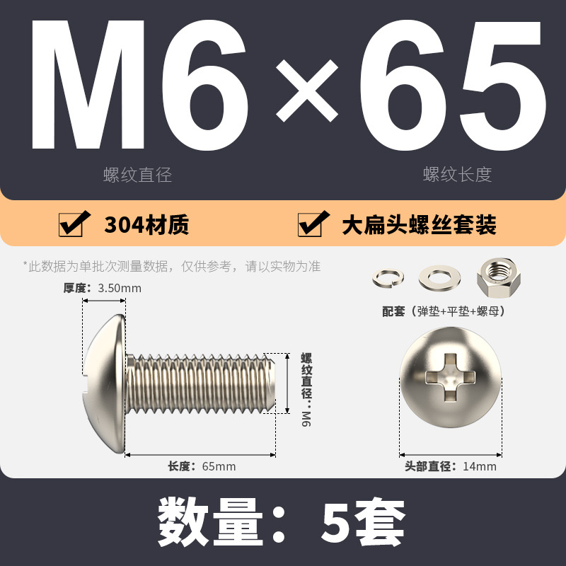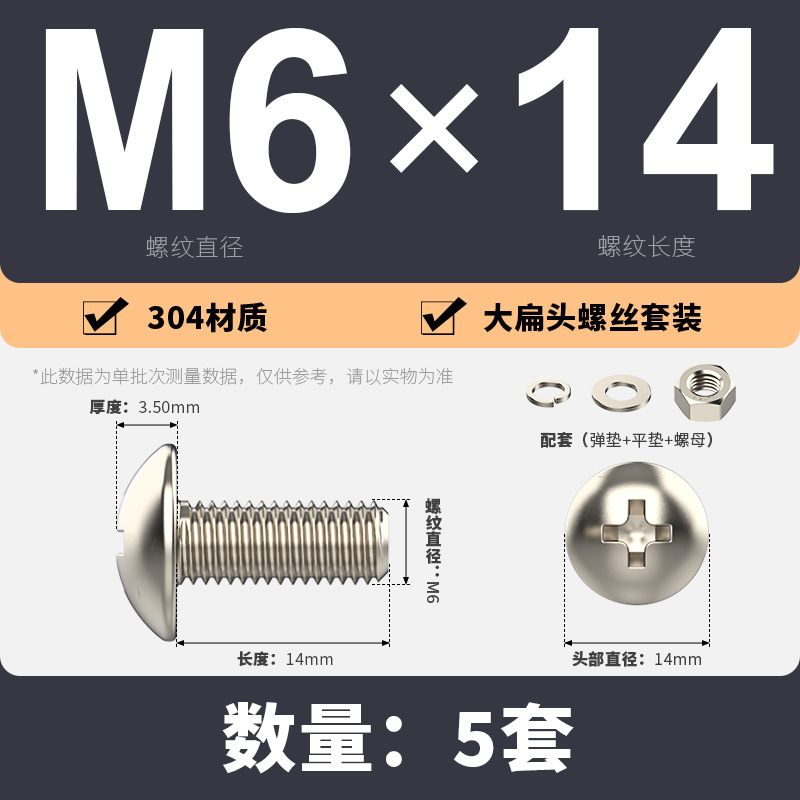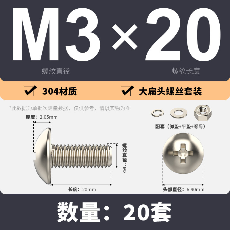 304 스테인레스 스틸 대형 플랫 헤드 필립스 스크류 너트 세트 플랫 패드 버섯 헤드 볼트 조합 완전한 책스토어 가기