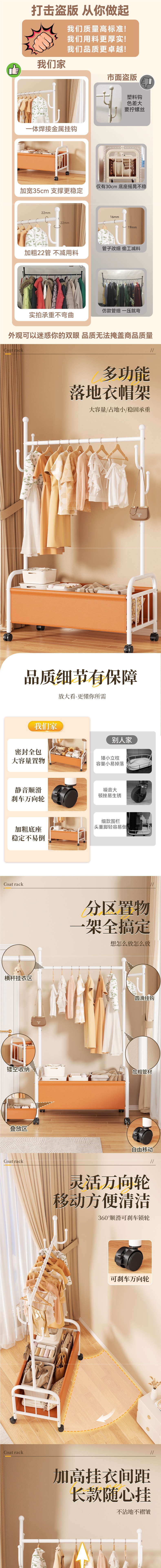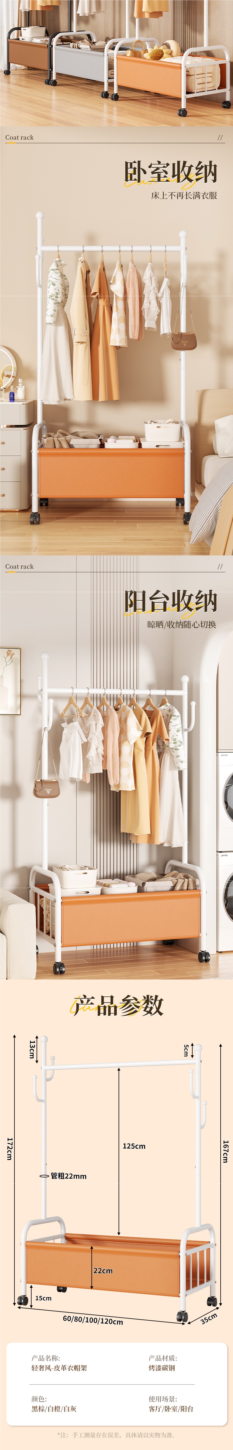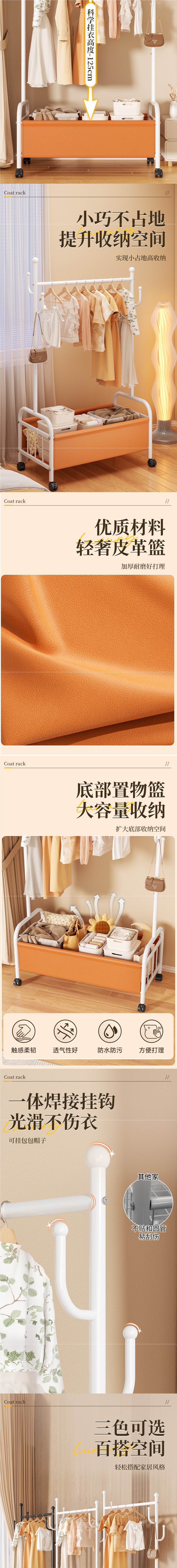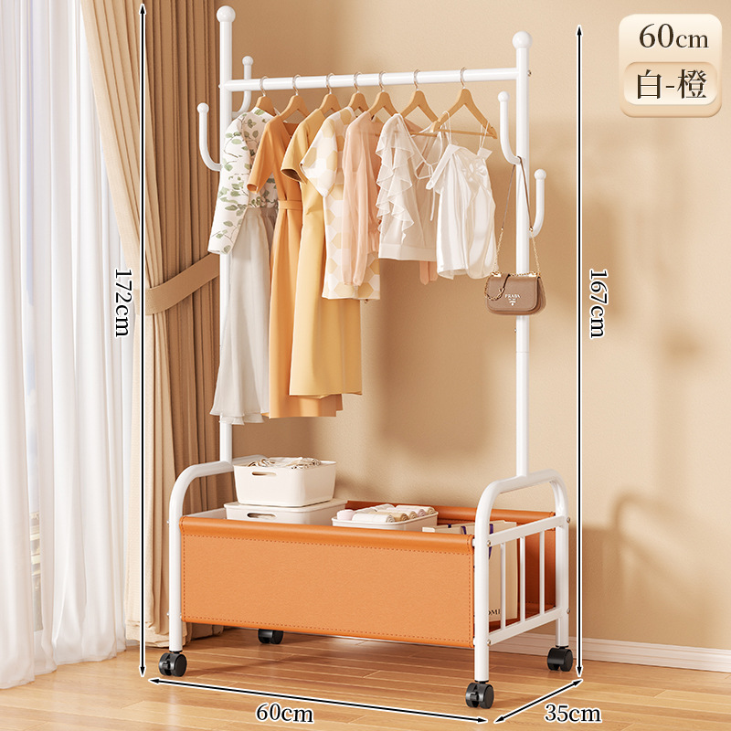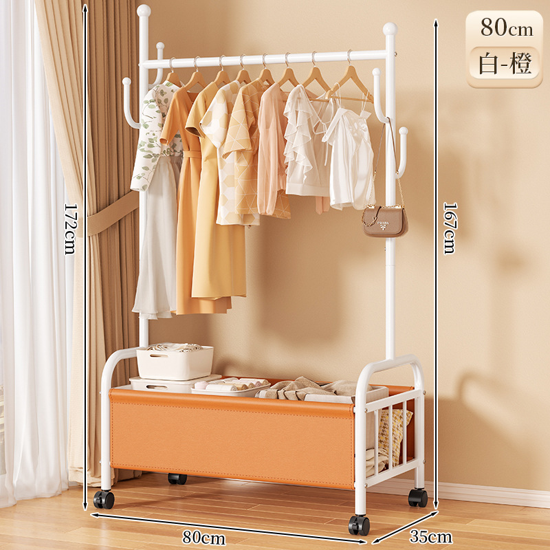 • [화이트오렌지 80cm] 두꺼운 파이프 직경 + 옷걸이 4개 + 가죽 수납바구니 + 만능바퀴
