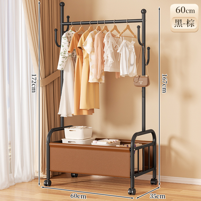 • [블랙 앤 브라운 60cm] 두꺼운 파이프 직경 + 옷걸이 4개 + 가죽 수납바구니 + 만능바퀴