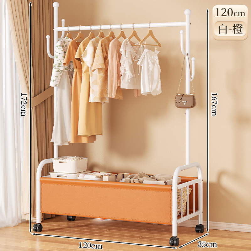 • [화이트 오렌지 120cm] 두꺼운 파이프 직경 + 옷걸이 4개 + 가죽 수납바구니 + 만능바퀴
