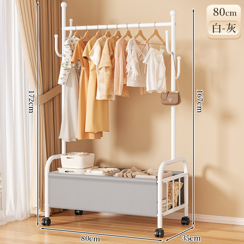 • [화이트그레이 80cm] 두꺼운 파이프 직경 + 옷걸이 4개 + 가죽 수납바구니 + 만능바퀴