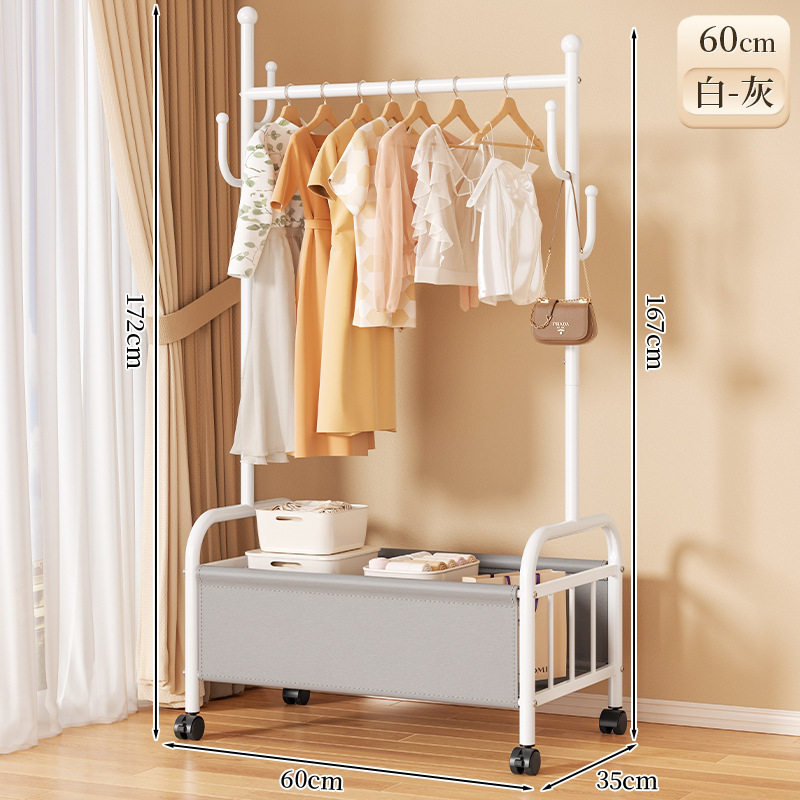• [화이트그레이 60cm] 두꺼운 파이프 직경 + 옷걸이 4개 + 가죽 수납바구니 + 만능바퀴
