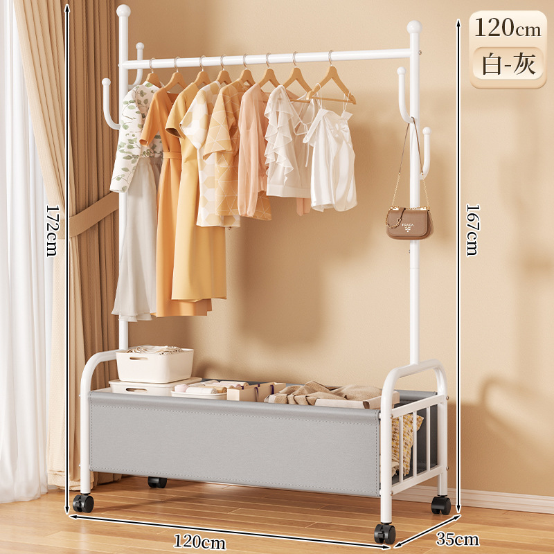 • [화이트그레이 120cm] 두꺼운 파이프 직경 + 옷걸이 4개 + 가죽 수납바구니 + 만능바퀴