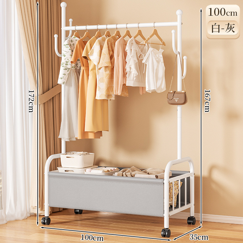 • [화이트그레이 100cm] 두꺼운 파이프 직경 + 옷걸이 4개 + 가죽 수납바구니 + 만능바퀴