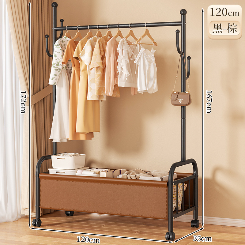 • [블랙 앤 브라운 120cm] 두꺼운 파이프 직경 + 옷걸이 4개 + 가죽 수납바구니 + 만능바퀴