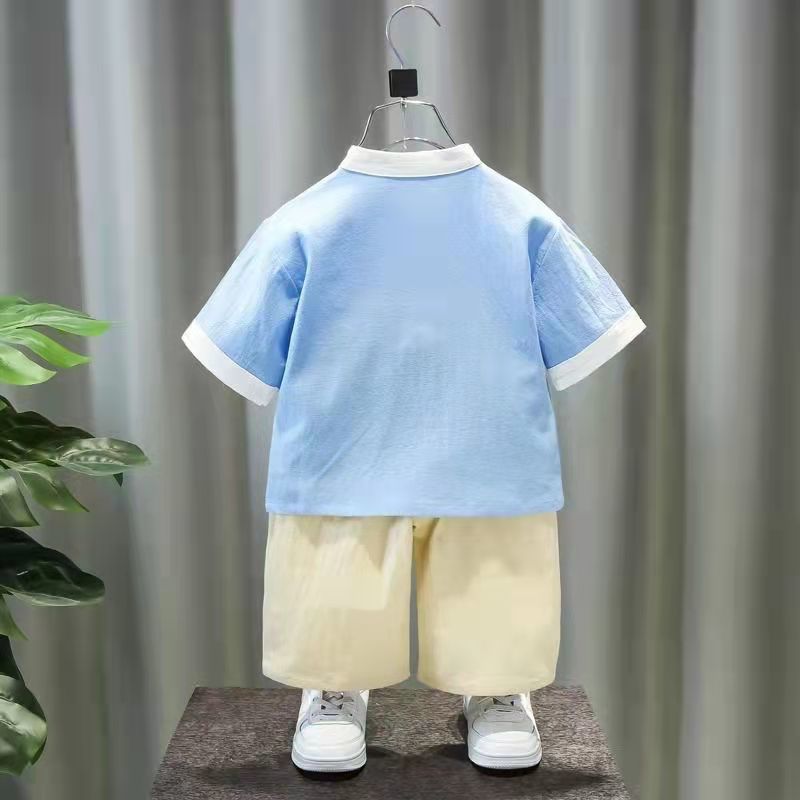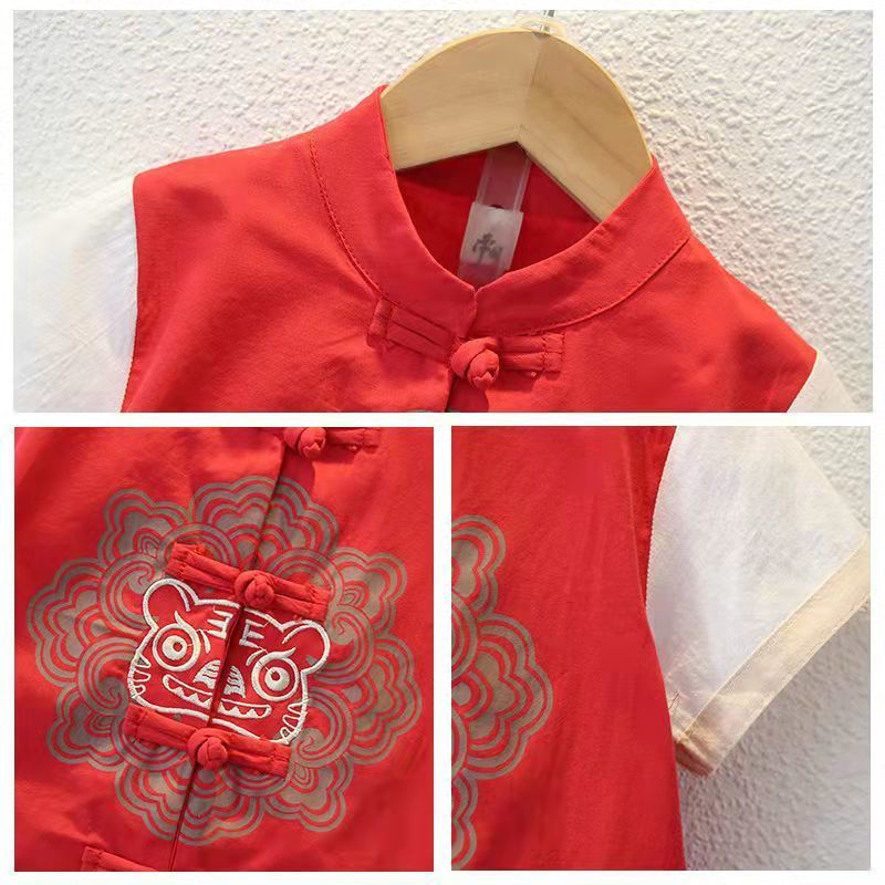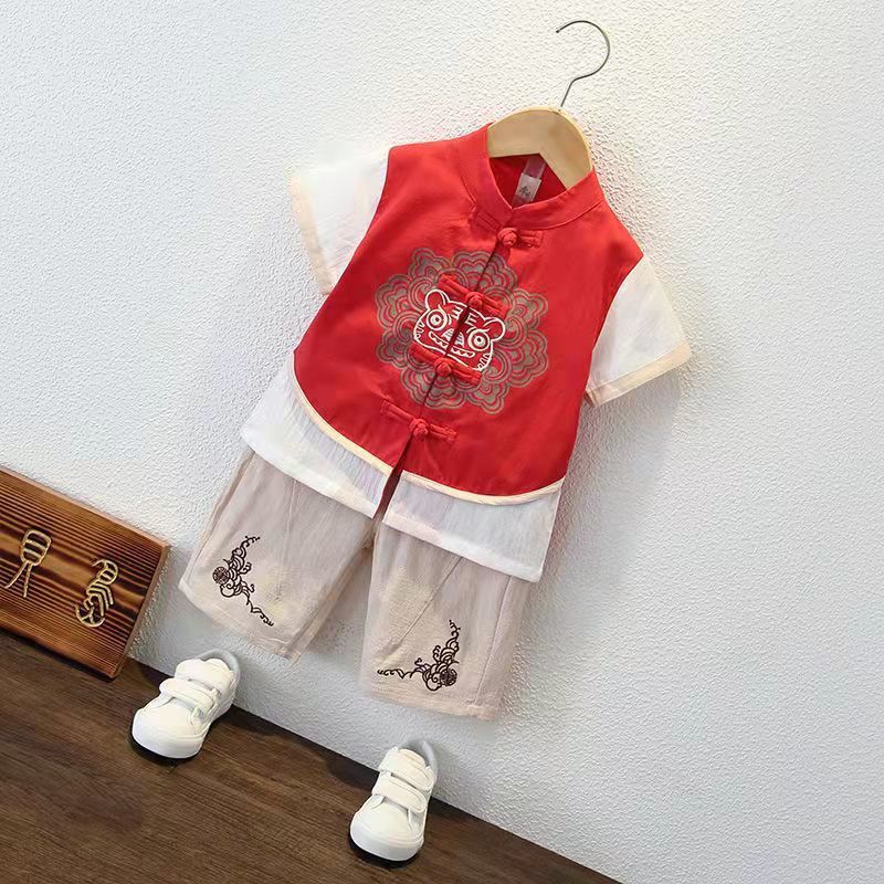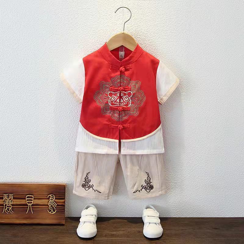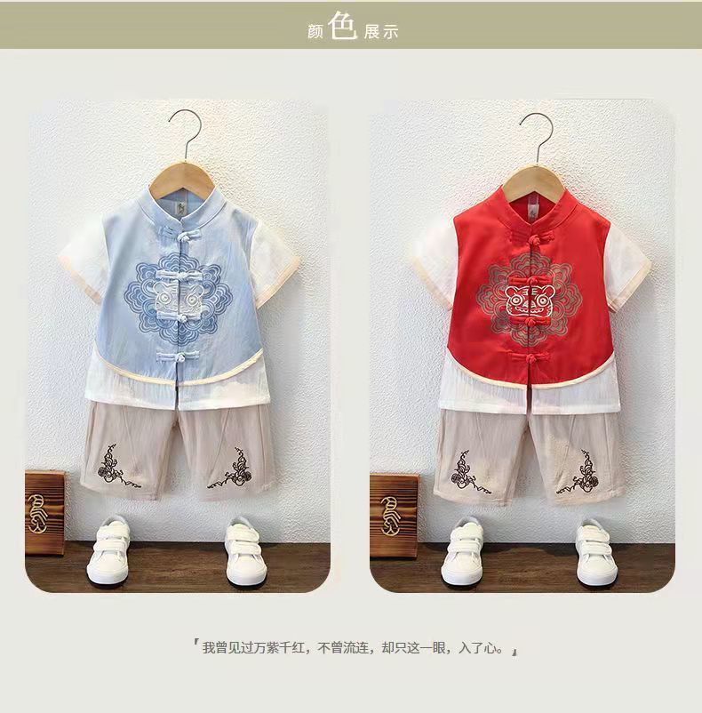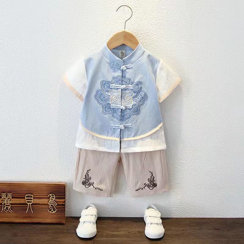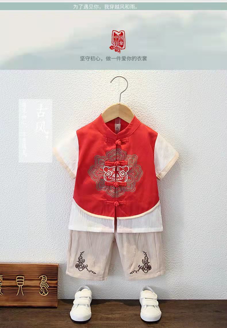 [2224 컬렉션] 어린이 탕 세트 여름 한푸 중국 스타일 세트 소년 아기 얇은 짧은 소매 중국 스타일