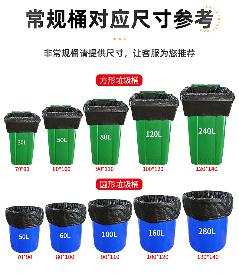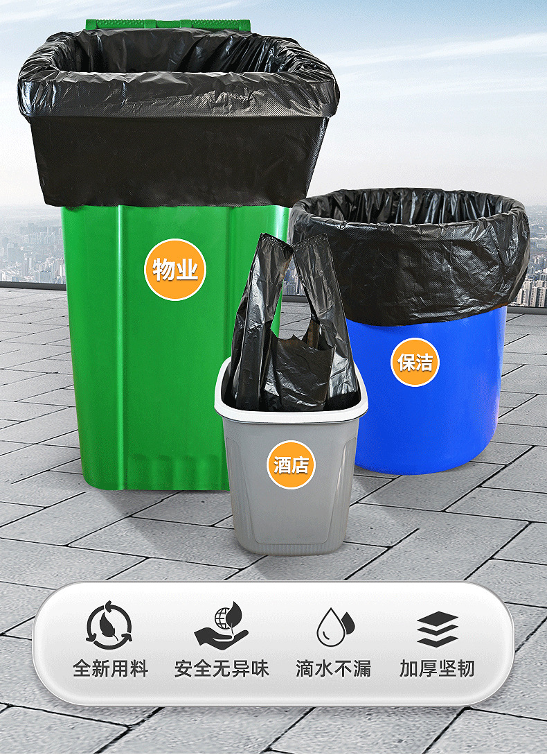 큰 도매 검은 쓰레기 봉투 재산 주방 위생 쓰레기 봉투 두꺼운 학교 호텔 상업