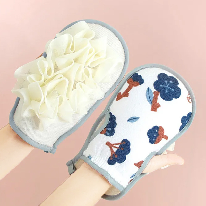 목욕용 꽃 모양 목욕타월 2-in-1 각질 제거 장갑, 늦가을 목욕용 꽃 모양 등 문지르는 타월 세트, 목욕용품스토어 가기