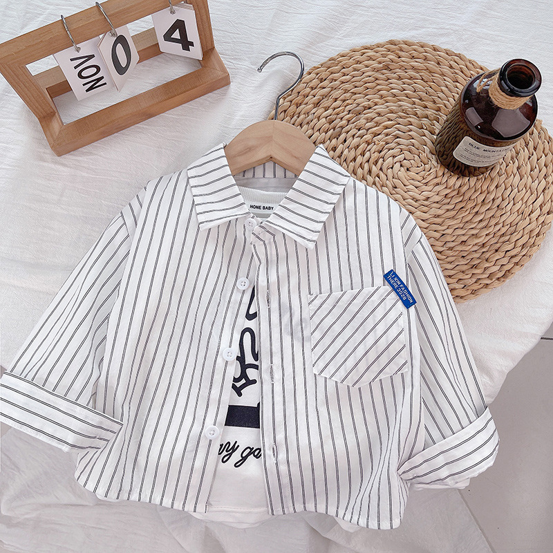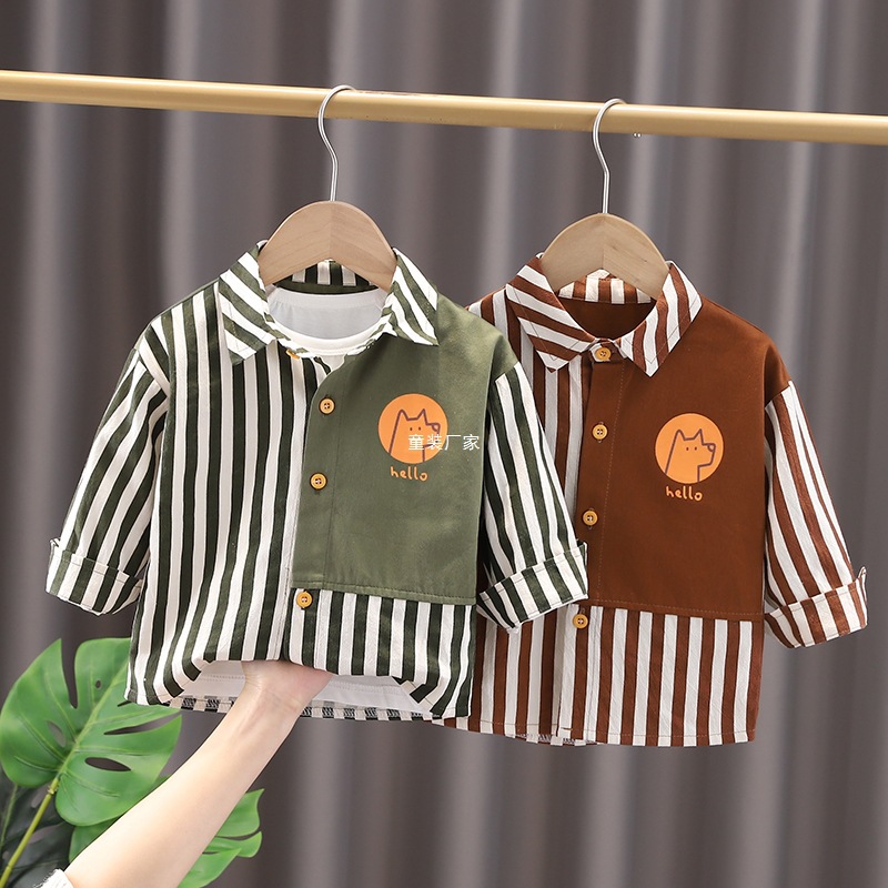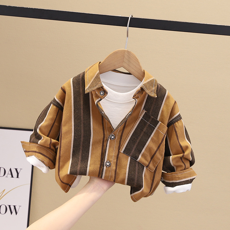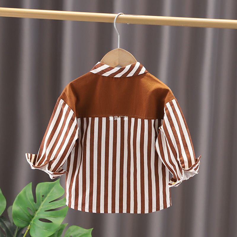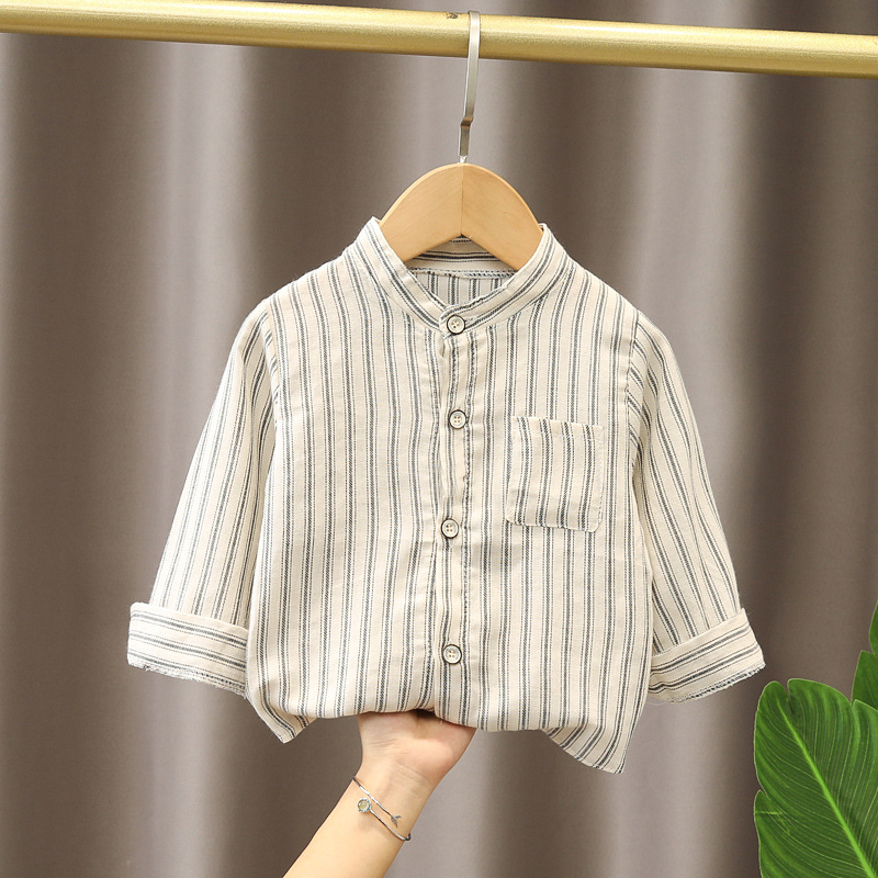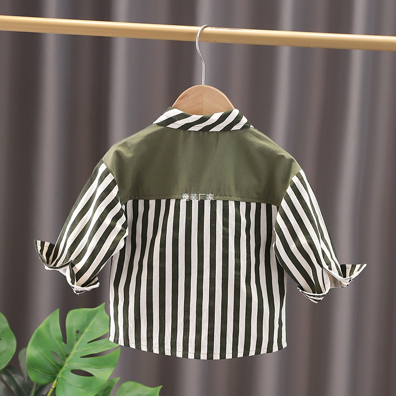새로운 소년 셔츠 2025 봄 새로운 어린이 코트 아기 긴 소매 최고 어린이 셔츠 봄과 가을 줄무늬