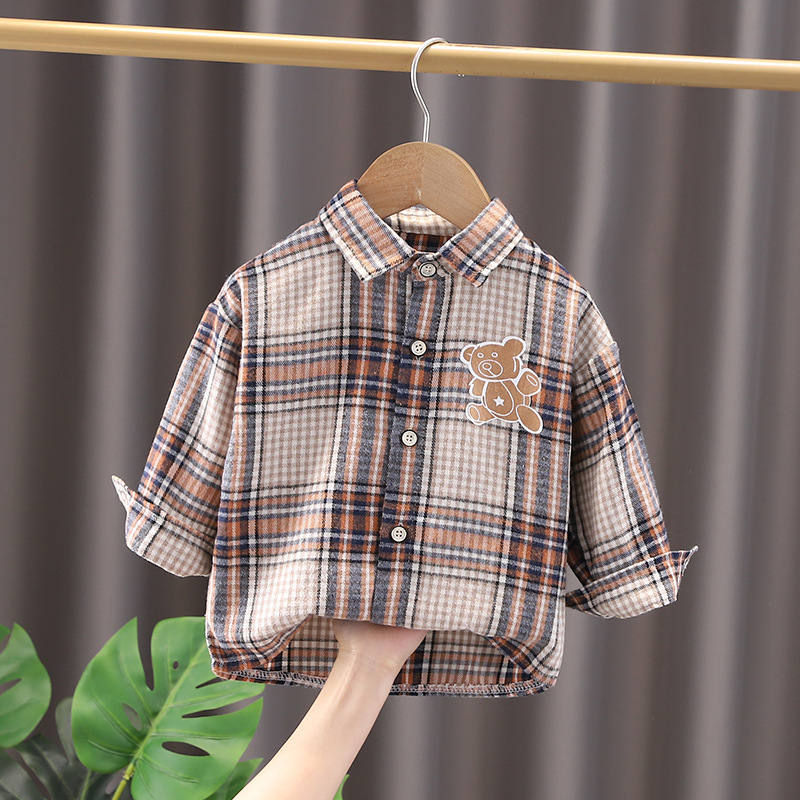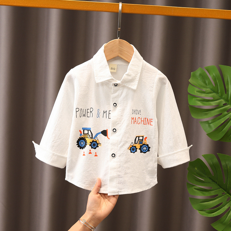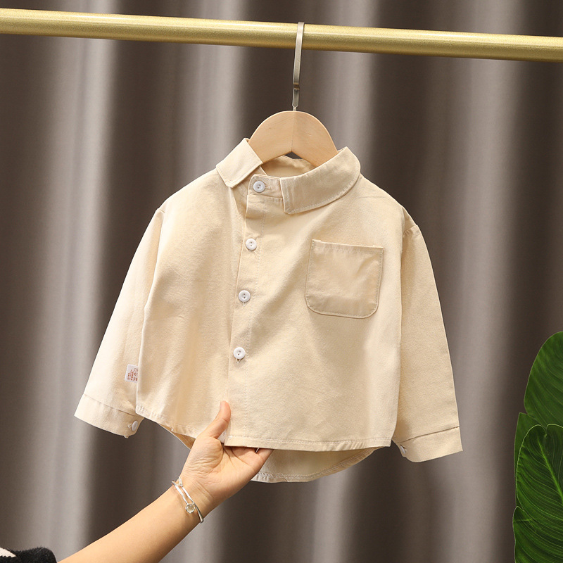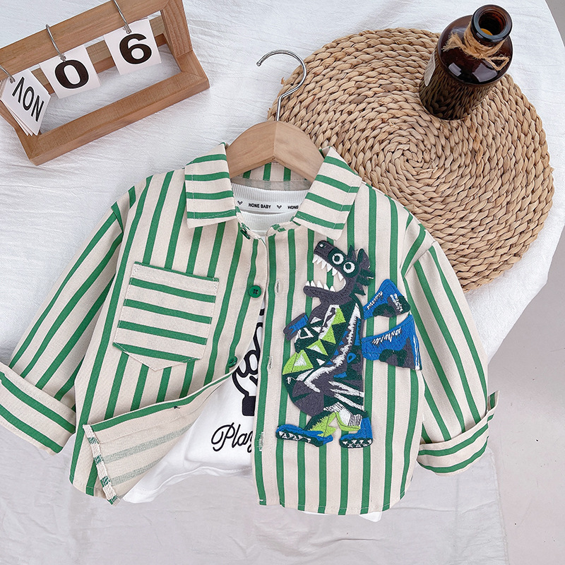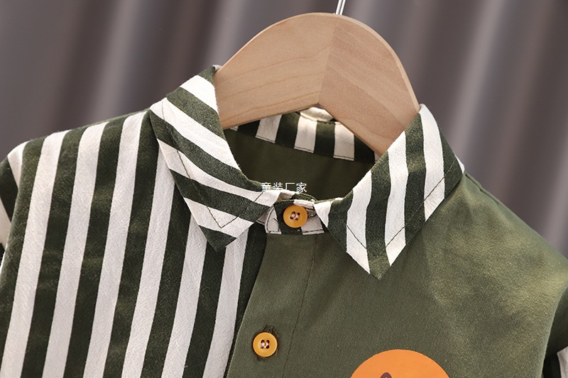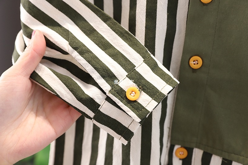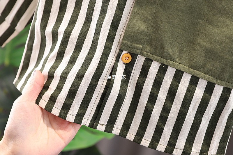 새로운 소년 셔츠 2025 봄 새로운 어린이 코트 아기 긴 소매 최고 어린이 셔츠 봄과 가을 줄무늬