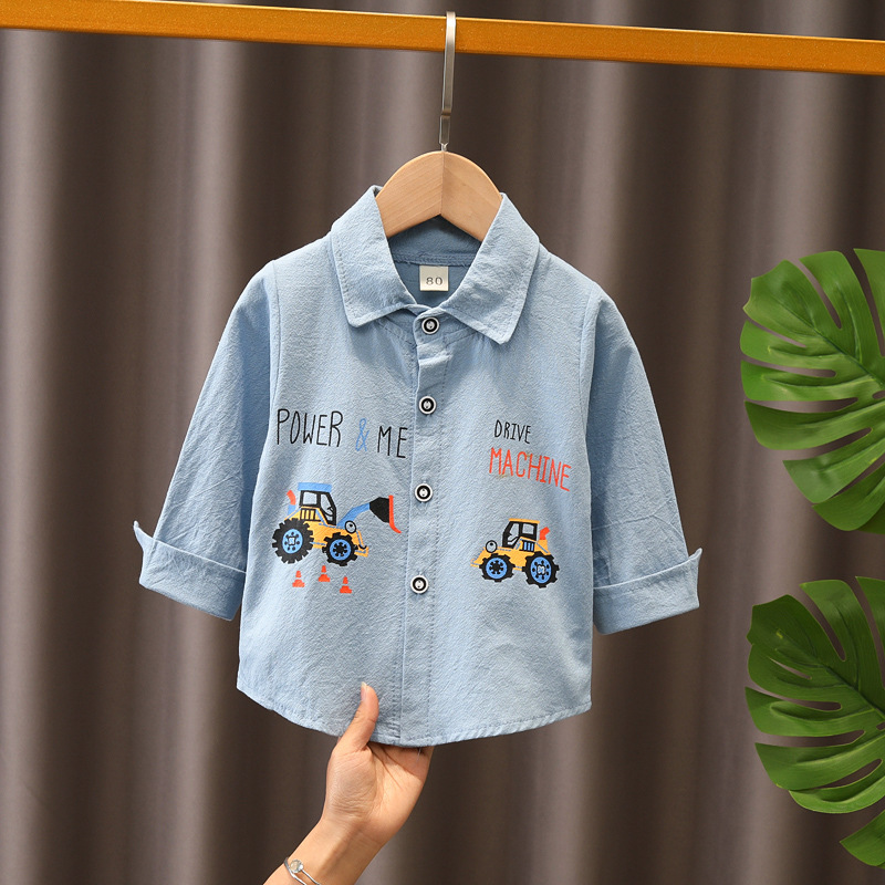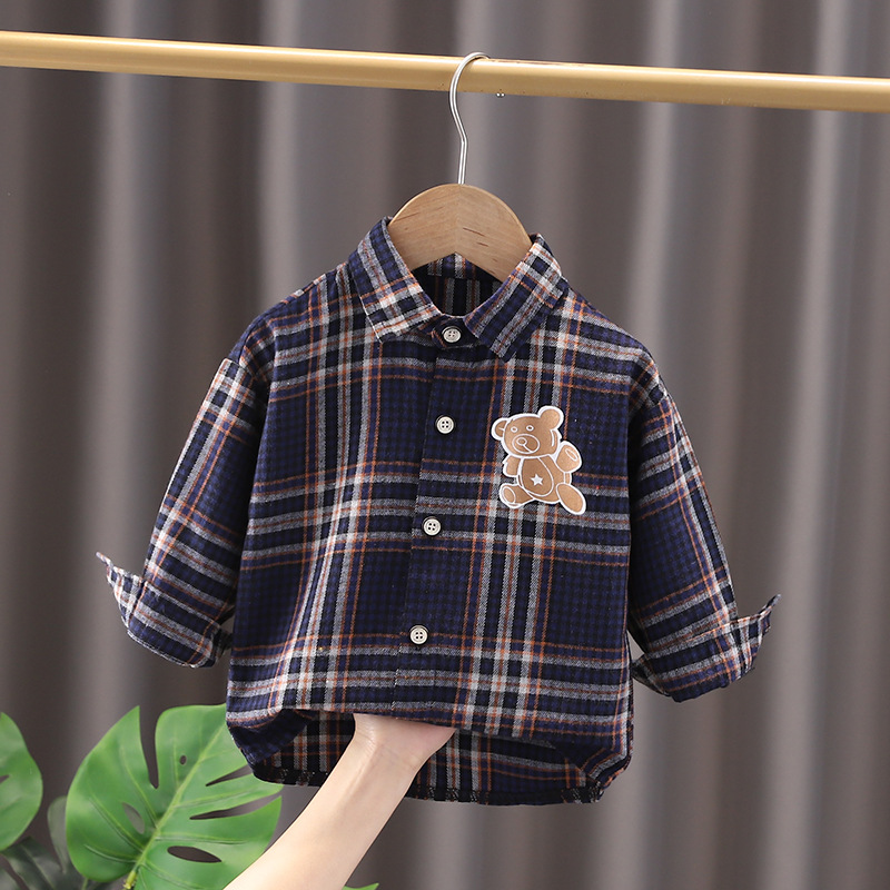 새로운 소년 셔츠 2025 봄 새로운 어린이 코트 아기 긴 소매 최고 어린이 셔츠 봄과 가을 줄무늬스토어 가기