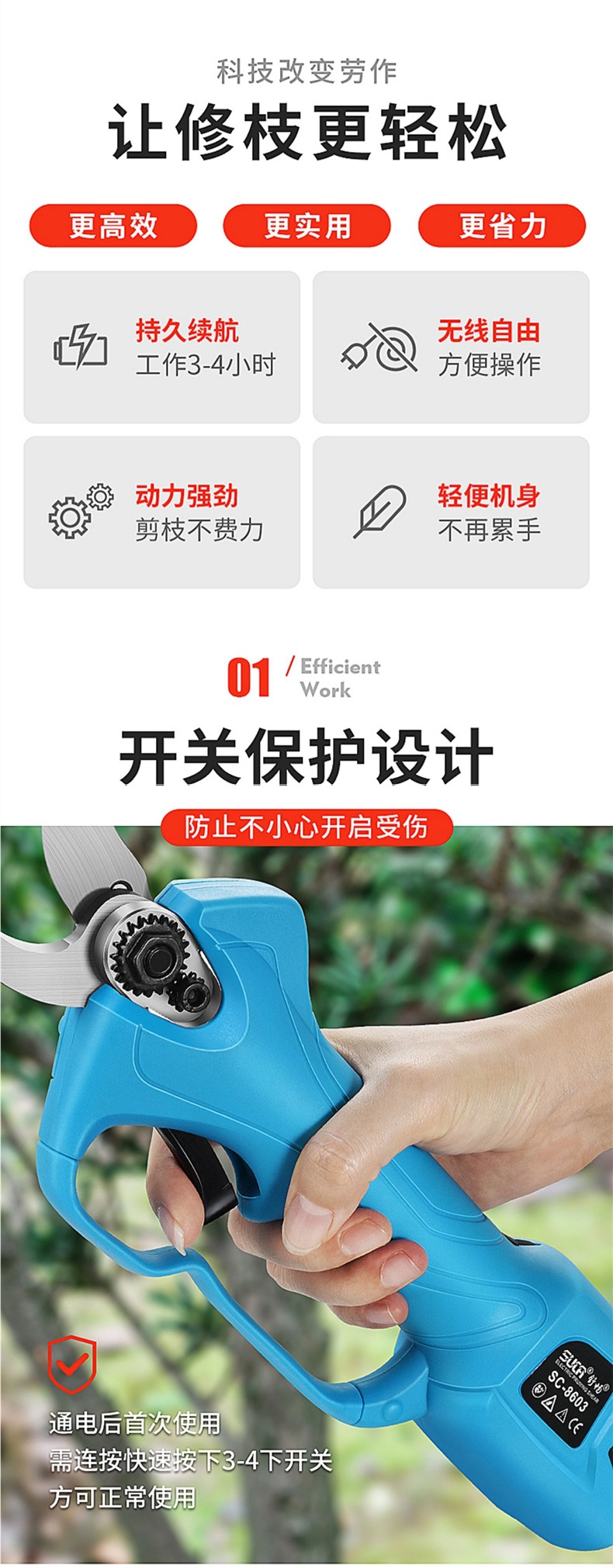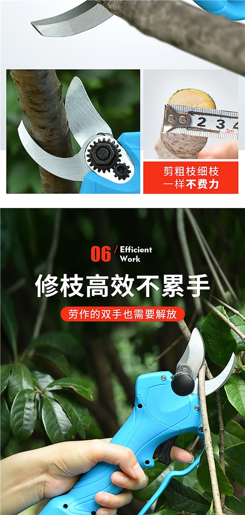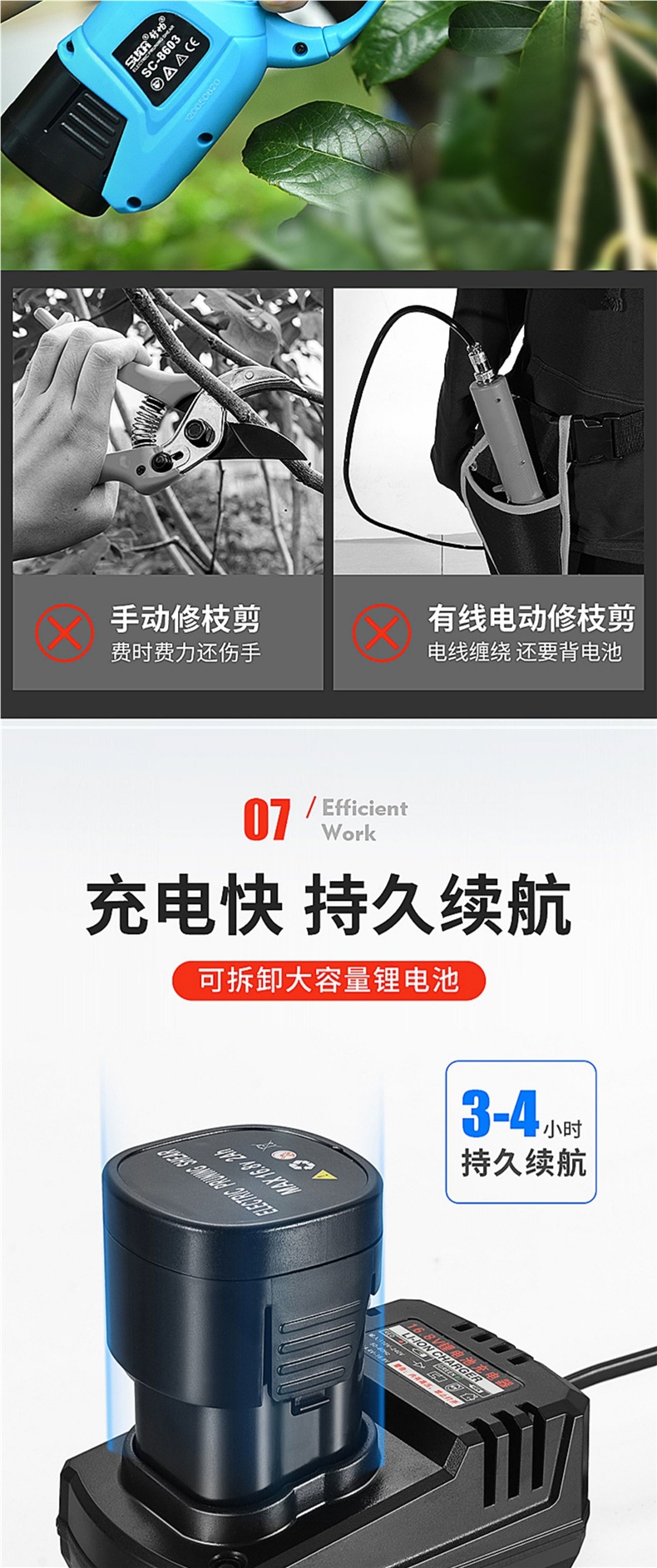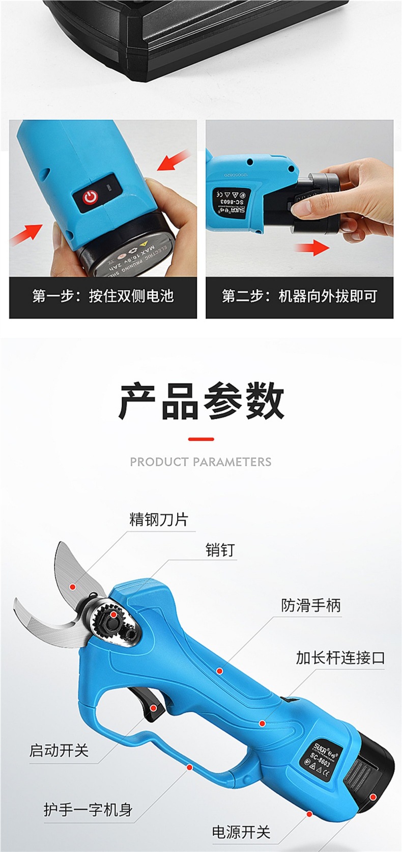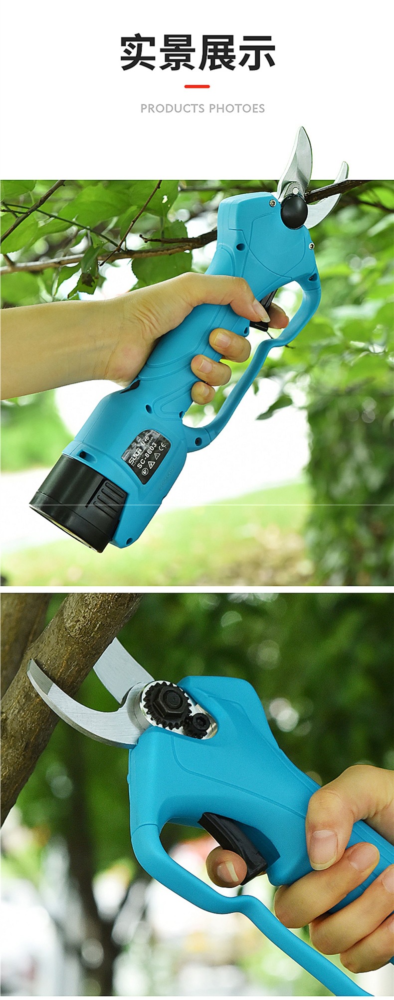 슈창 전기 가위 과일 나무 가지 치기 가위 충전식 정원 리튬 전기 가위 굵은 지점 가위