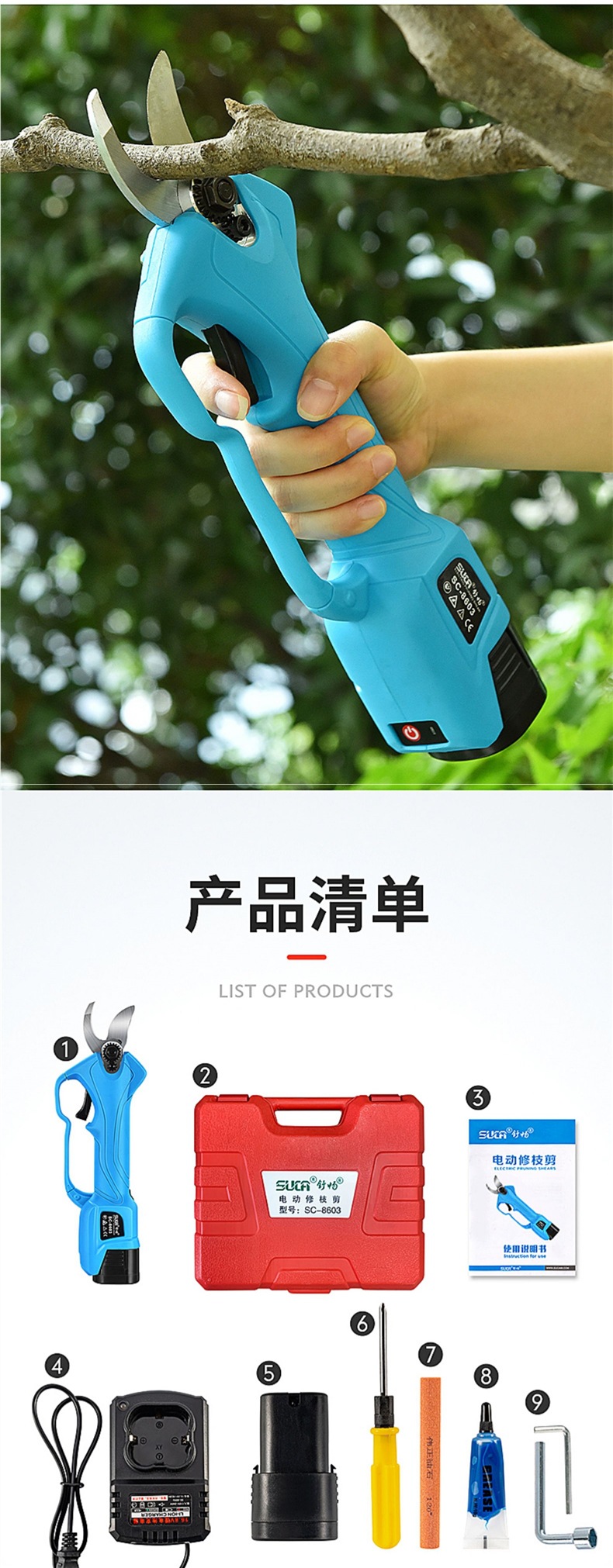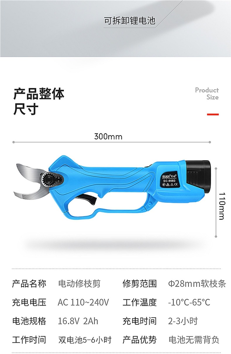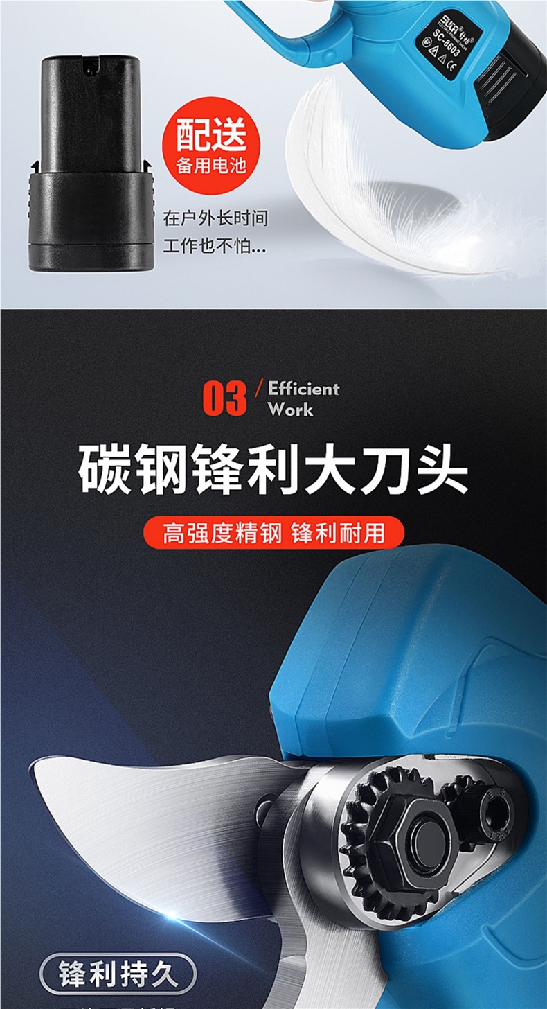 슈창 전기 가위 과일 나무 가지 치기 가위 충전식 정원 리튬 전기 가위 굵은 지점 가위스토어 가기