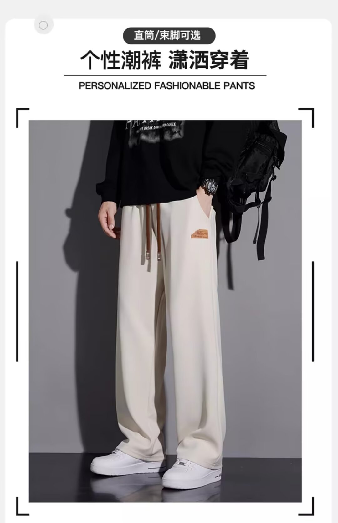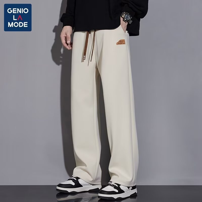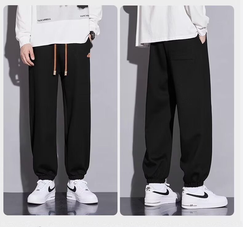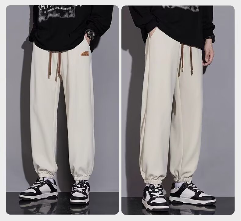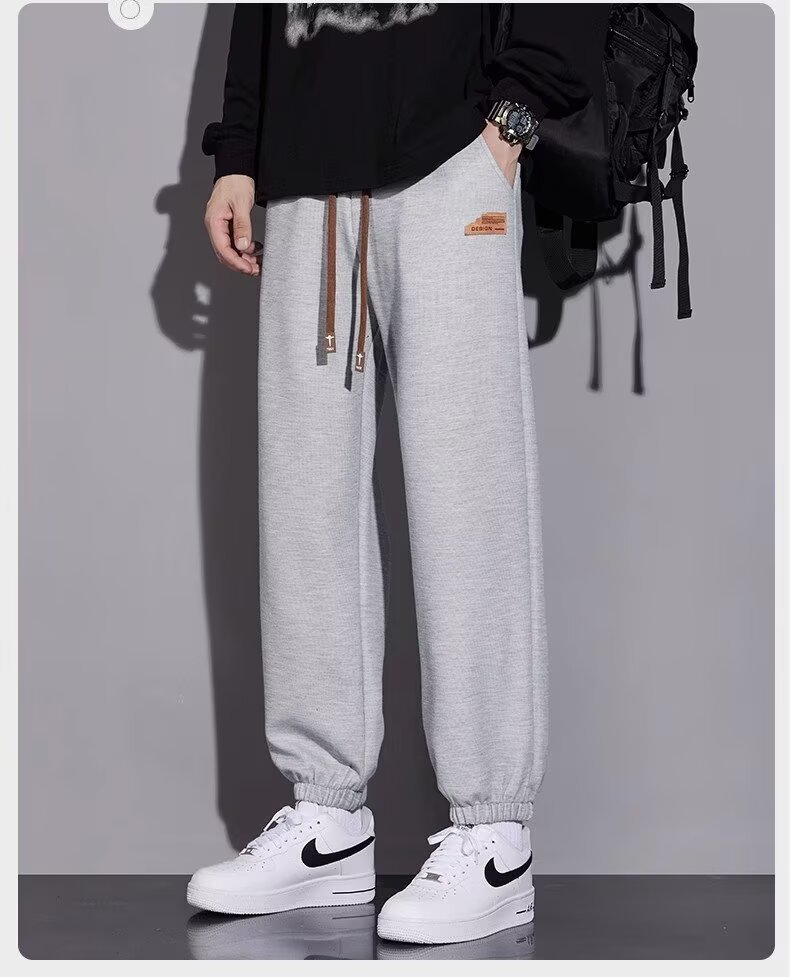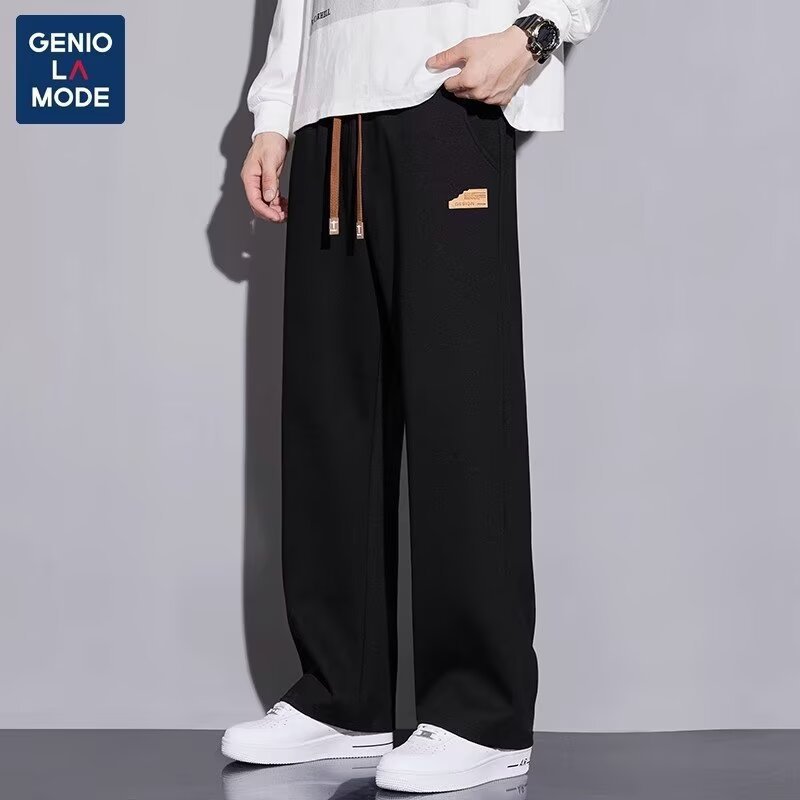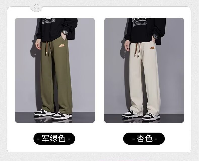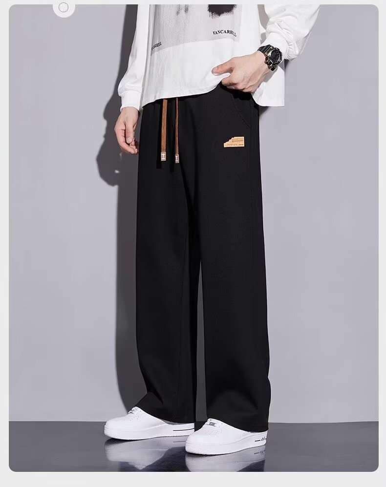 캐주얼 바지 남자 봄과 가을 2025 새로운 느슨한 투약 스트레이트 유행 브랜드 인 스포츠 바지 솔리드 컬러 라벨