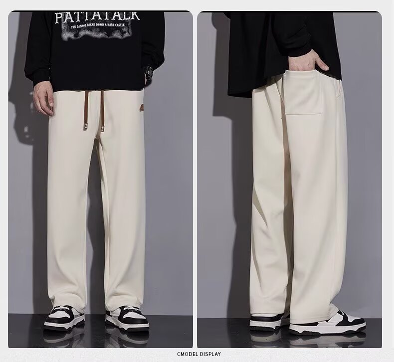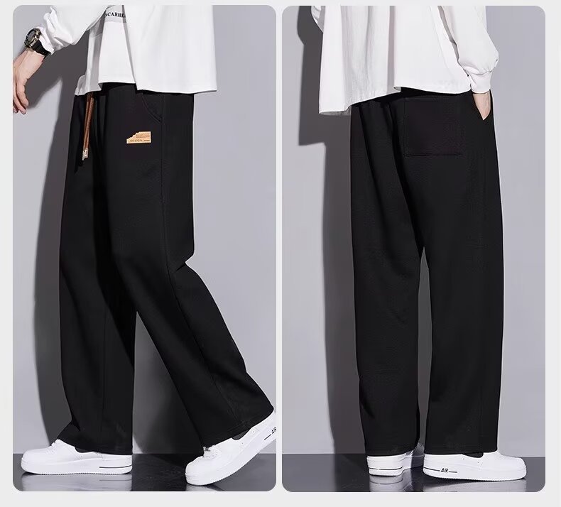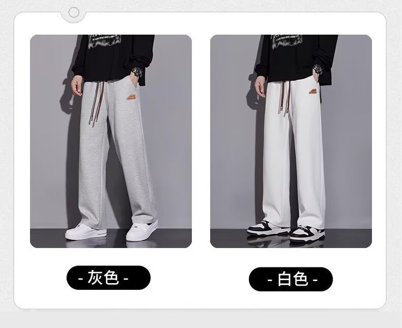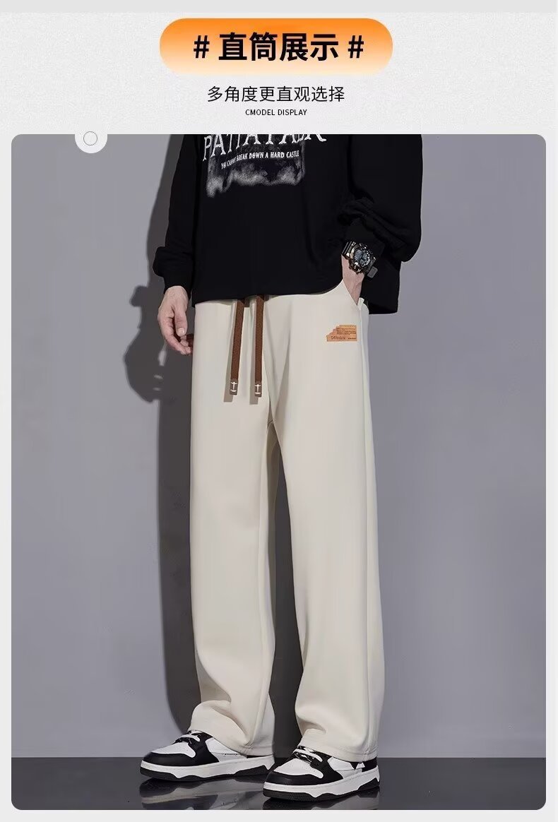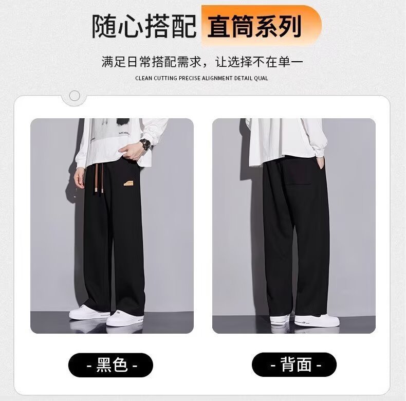 캐주얼 바지 남자 봄과 가을 2025 새로운 느슨한 투약 스트레이트 유행 브랜드 인 스포츠 바지 솔리드 컬러 라벨스토어 가기