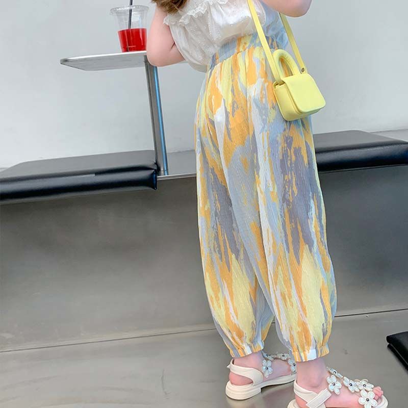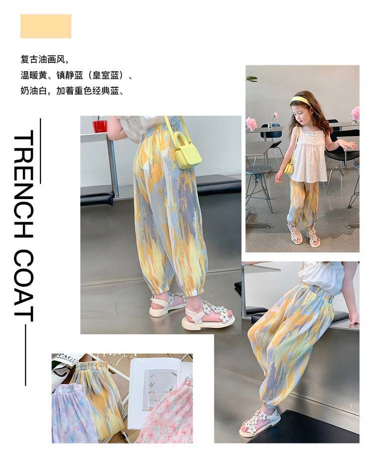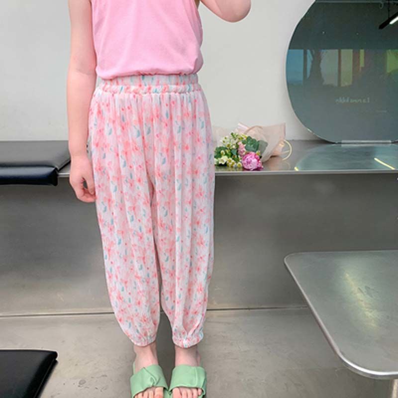 어린이 착용 새로운 쉬폰 바지 어린이 모기 방지 바지 여자 여름 얇은 아기 시원한 여름 중간 및 큰 어린이 바지스토어 가기