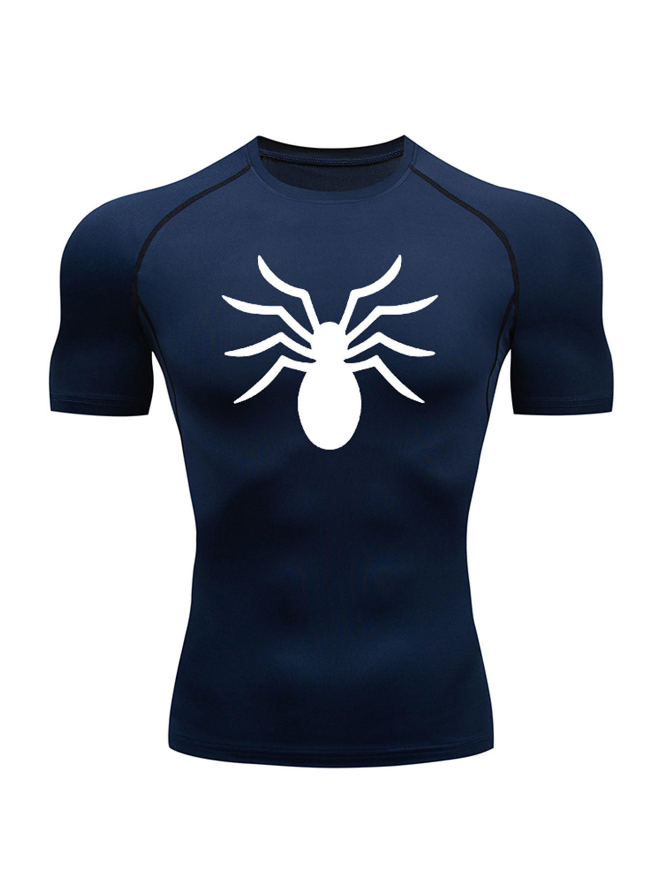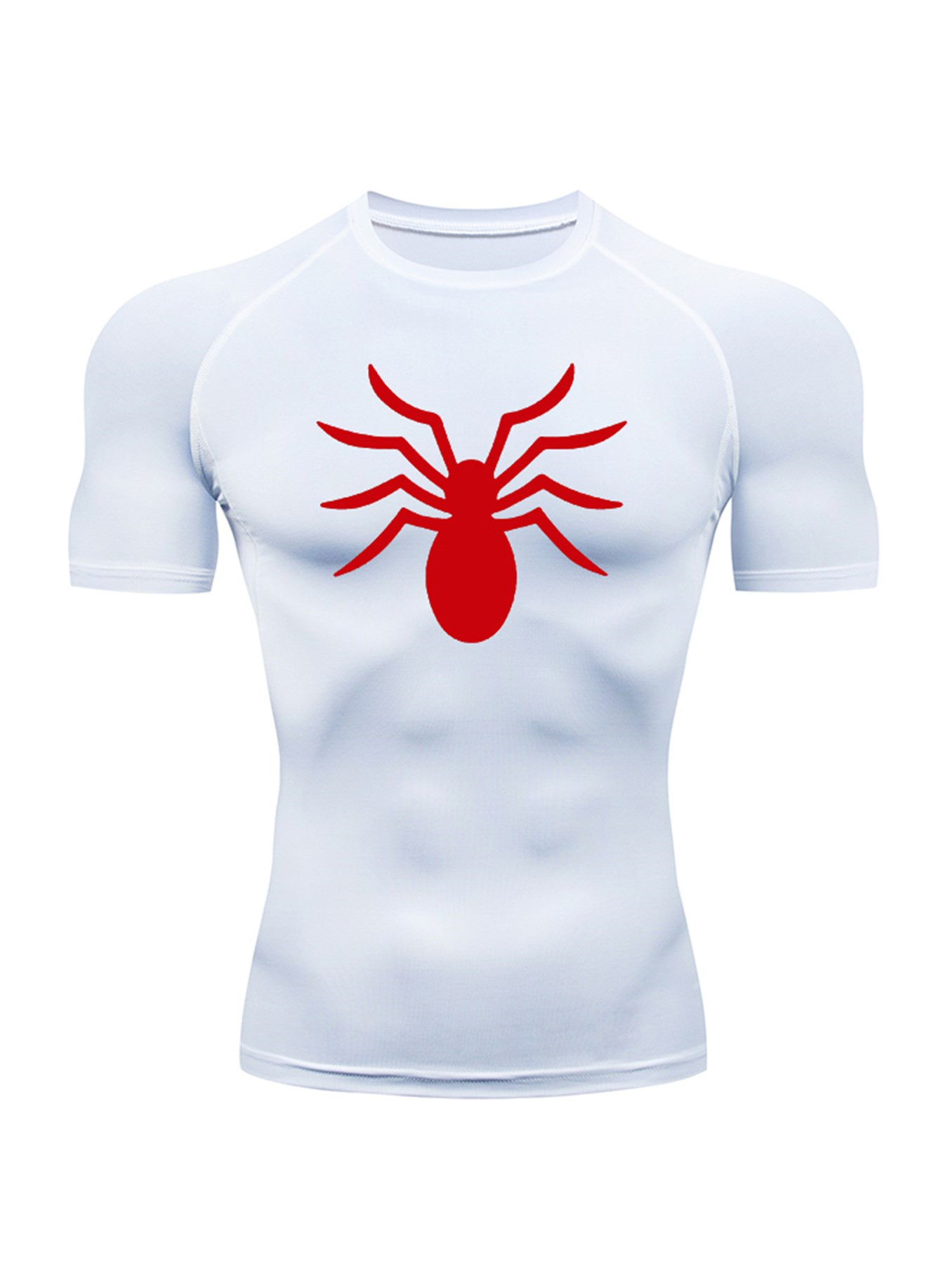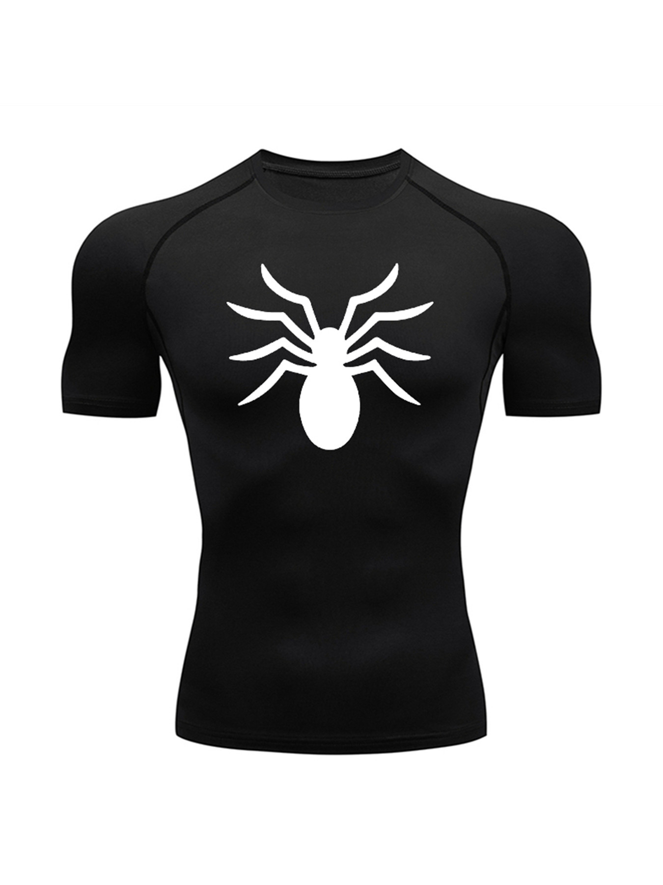 2025 남자 스포츠 짧은 소매 피트니스 티셔츠 달리기 티셔츠 단단한 탑 스파이더 맨 인쇄 그림