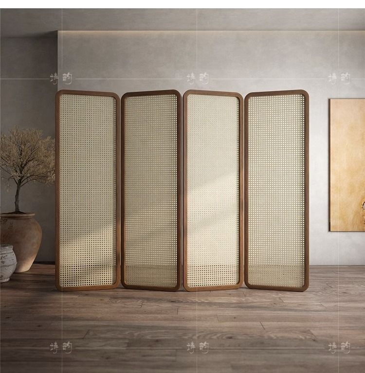 새로운 중국 스타일의 등나무 스크린 파티션 거실 문 커버 사무실 입장 커버 접이식 모바일 솔리드 우드 접이식 화면