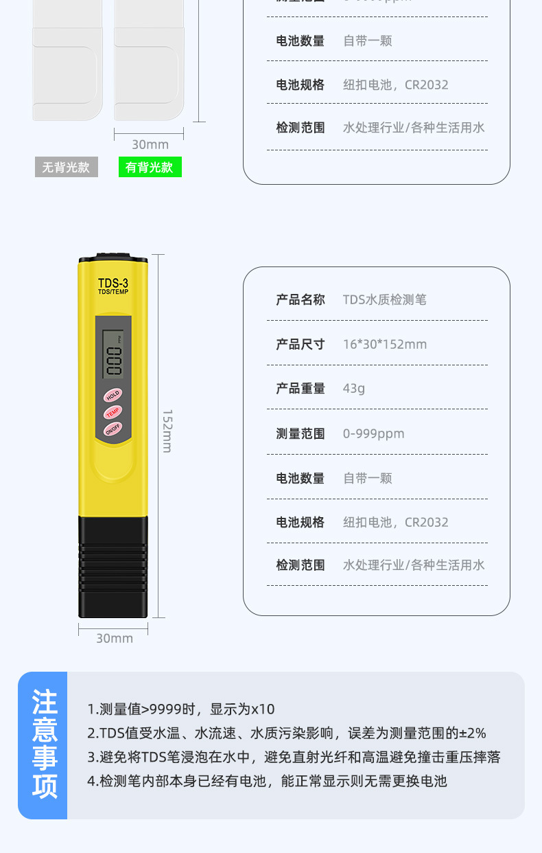 • 다기능 백라이트 TDS 수질 테스트 펜