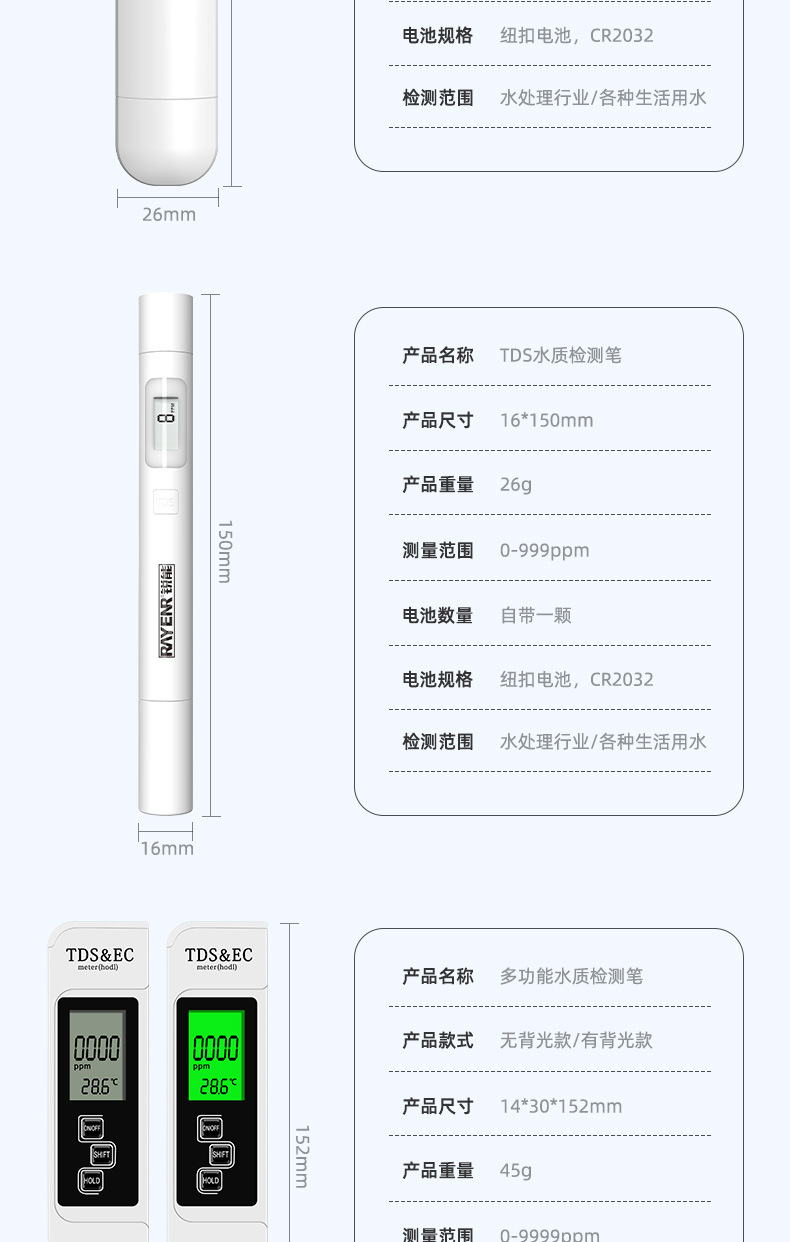 높은 정밀도 TDS 수질 테스트 펜 정수기 수돗물 마시는 물 다기능 물 테스트 장비