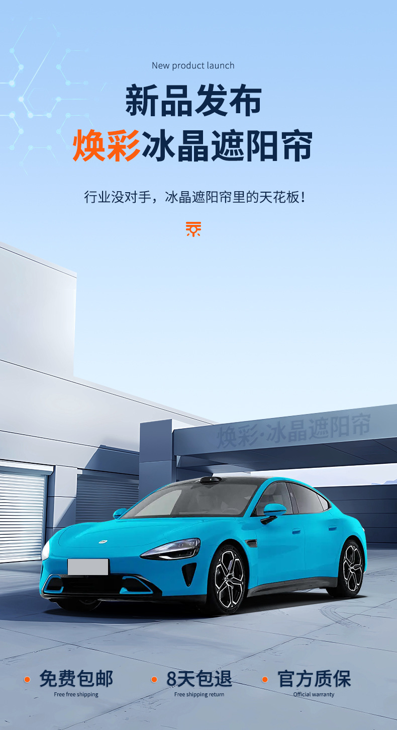 Xiaomi SU7 특수 빛나는 얼음 크리스탈 캐노피 차양 열 절연 자외선 차단 자외선 차단 무손실 설치에 적합스토어 가기