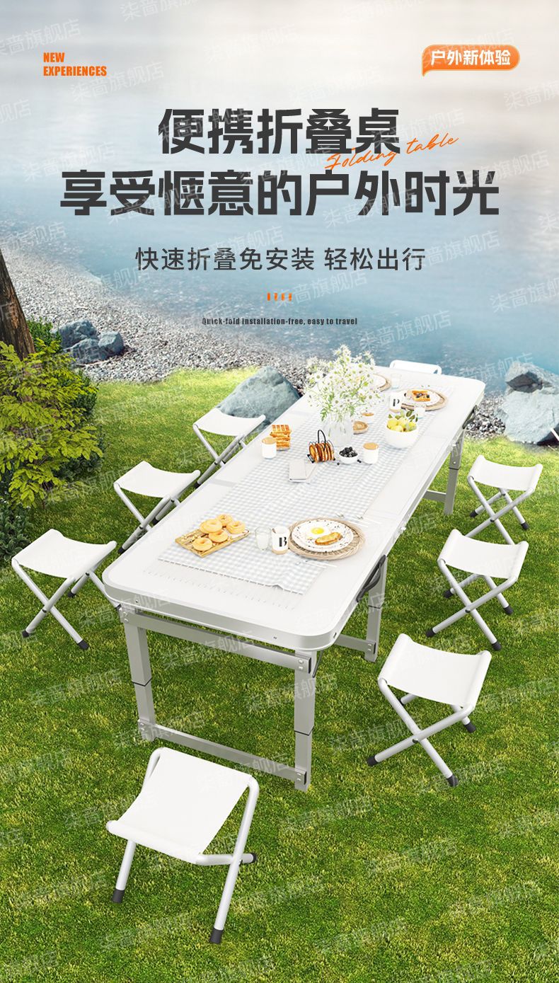 야외 접이식 테이블 알루미늄 합금 바베큐 캠핑 장비 스톨 피크닉 테이블과 의자 휴대용 야외 테이블스토어 가기