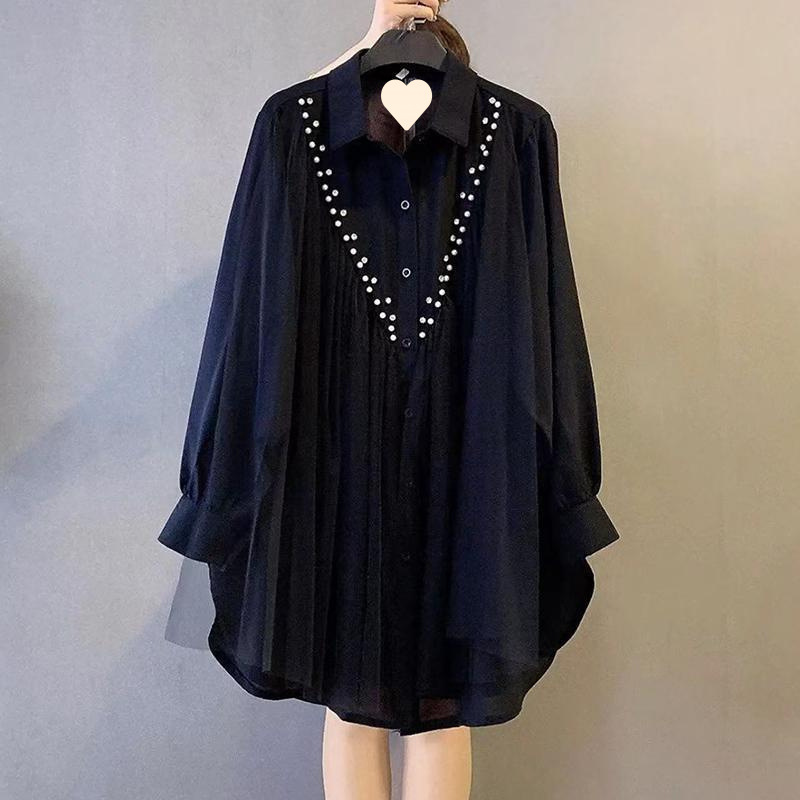 플러스 사이즈 여성복 2024 봄 새로운 패션 셔츠 느슨한 슬리밍 지방 자매 200 베이스 셔츠스토어 가기