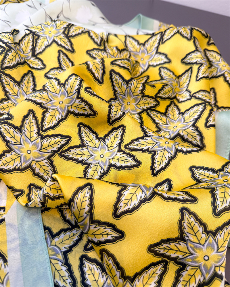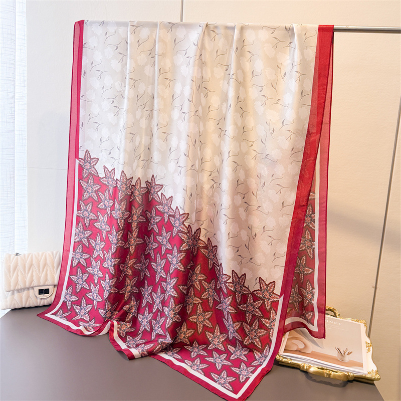 한국식 봄과 여름 인쇄 모조 실키 브로케이드 선 스크린 대조 컬러 스타 꽃 실크 스카프 긴 스카프 목도리 올 매치 헤드 스카프 스카프스토어 가기