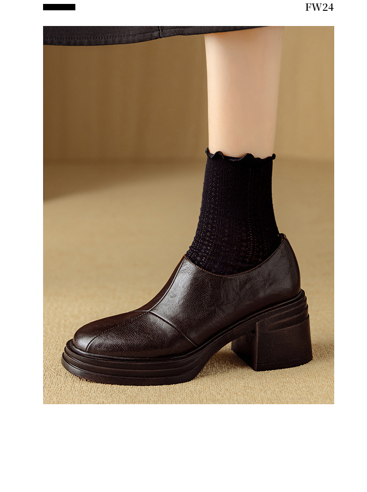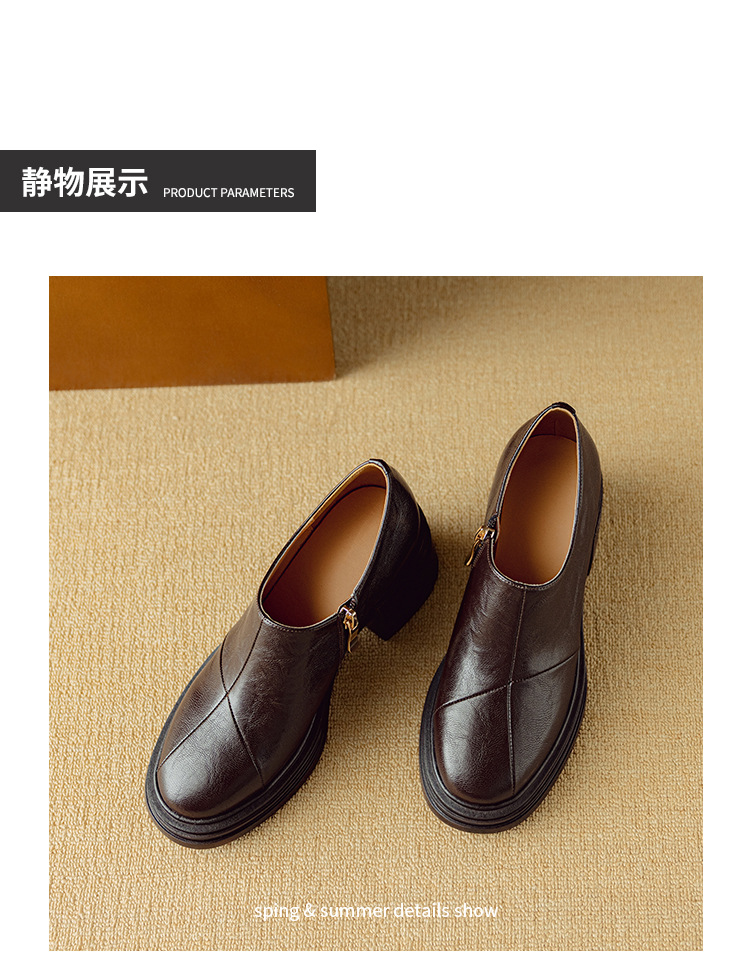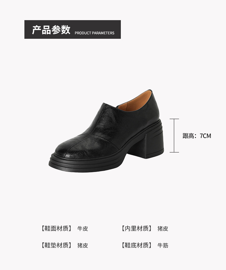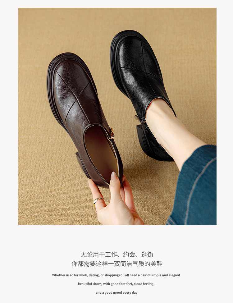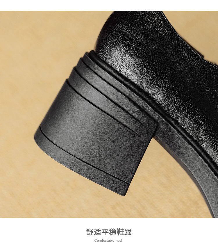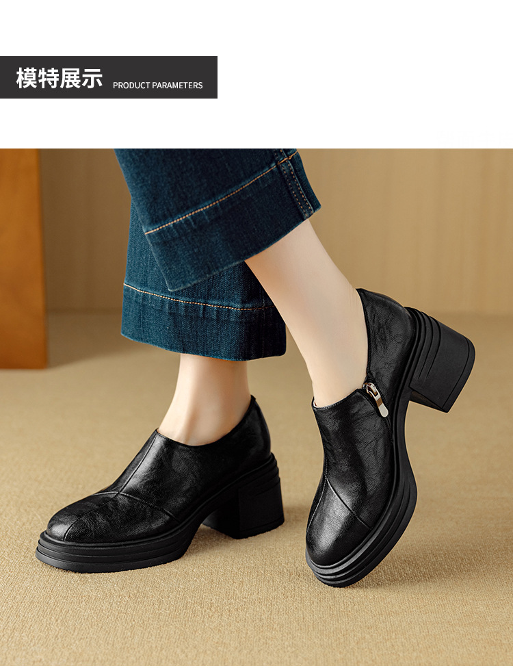 2025 새로운 봄과 가을 두꺼운 밑창 두꺼운 발 뒤꿈치 깊은 입 신발 여성 신발 사이드 지퍼 하이힐 블랙 작은 가죽 신발 여성용스토어 가기