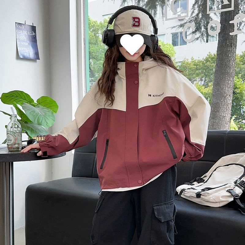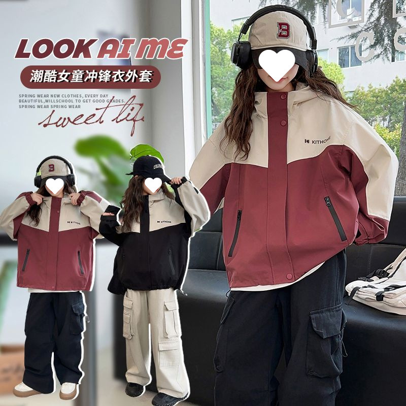 소녀 코트 봄과 가을 2025 새로운 어린이 서양 스타일 캐주얼 재킷 큰 어린이 봄 옷 윈드 브레이커 후드 재킷