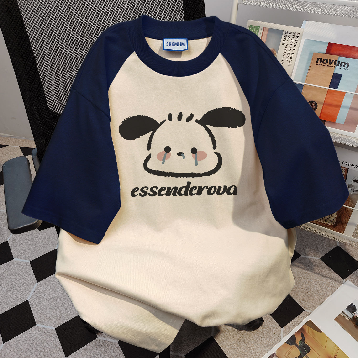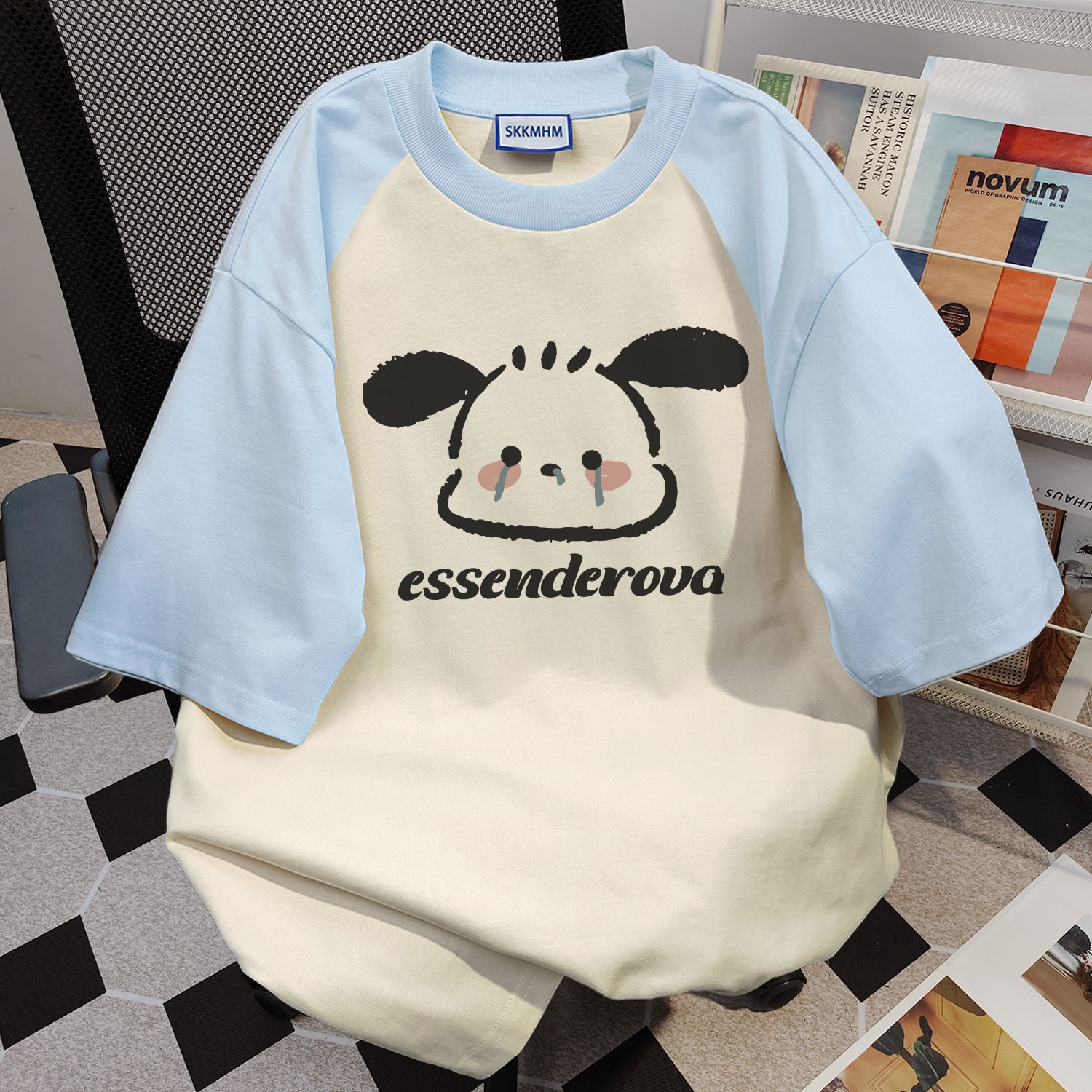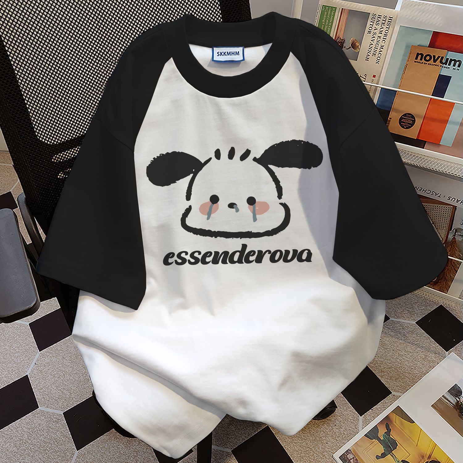 순면 미국 반팔 최고 여성 여름 느슨한 귀여운 우는 강아지 인쇄 바느질 티셔츠 둥근 목베이스 셔츠