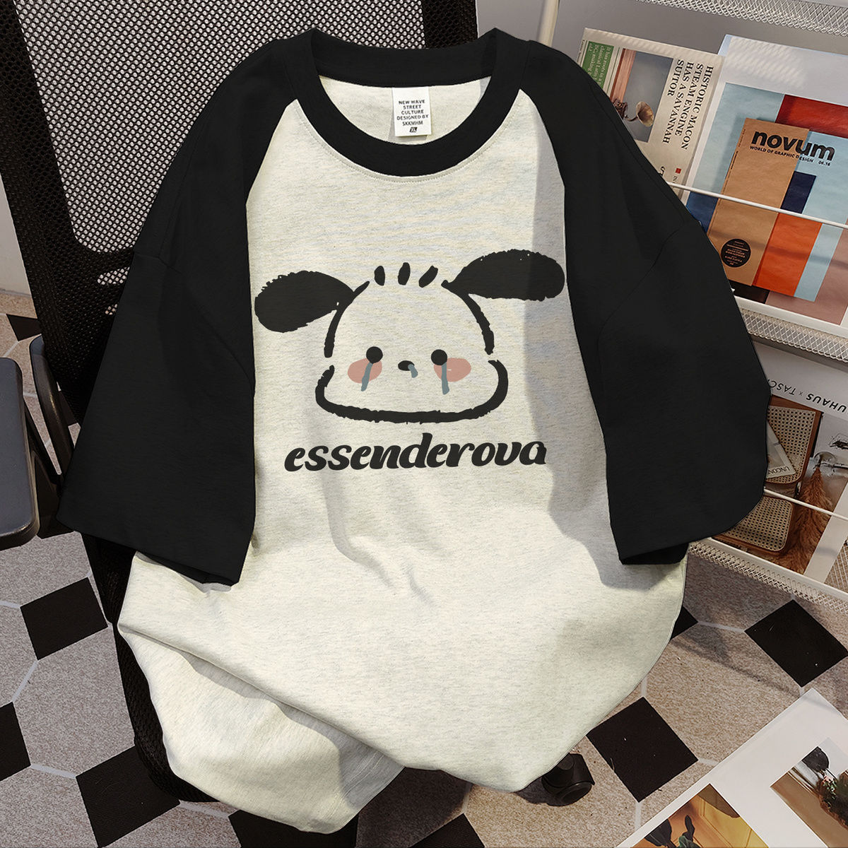 순면 미국 반팔 최고 여성 여름 느슨한 귀여운 우는 강아지 인쇄 바느질 티셔츠 둥근 목베이스 셔츠스토어 가기