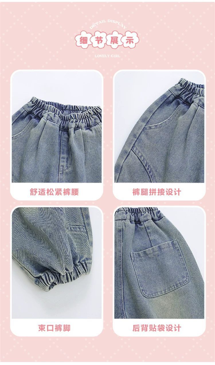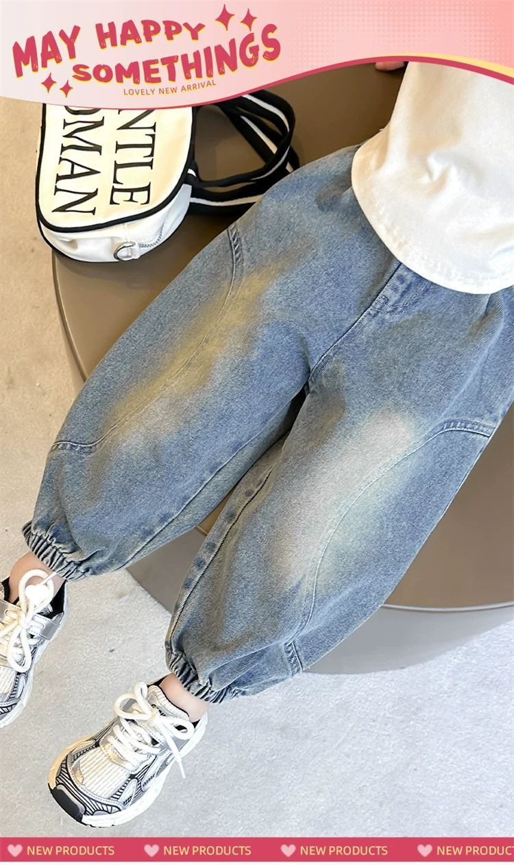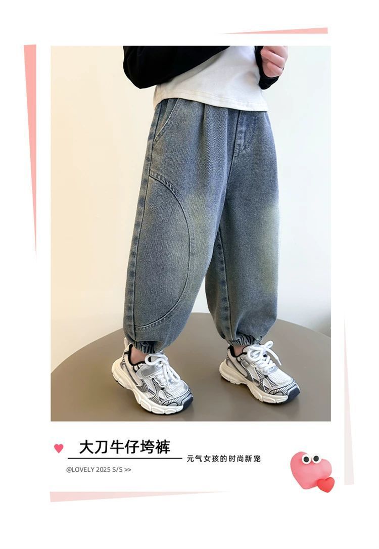 소녀 청바지 봄과 가을 2025 새로운 어린이 봄 아기 소녀 스트레이트 바지 봄 시미 터 캐주얼 바지스토어 가기