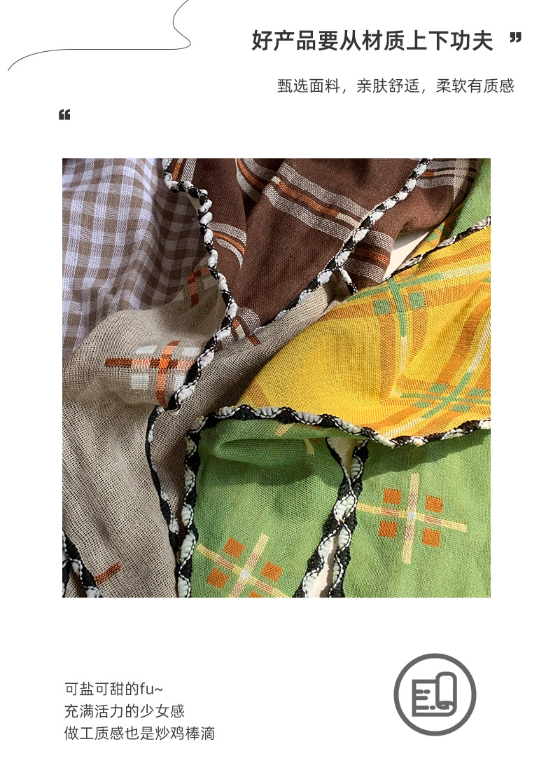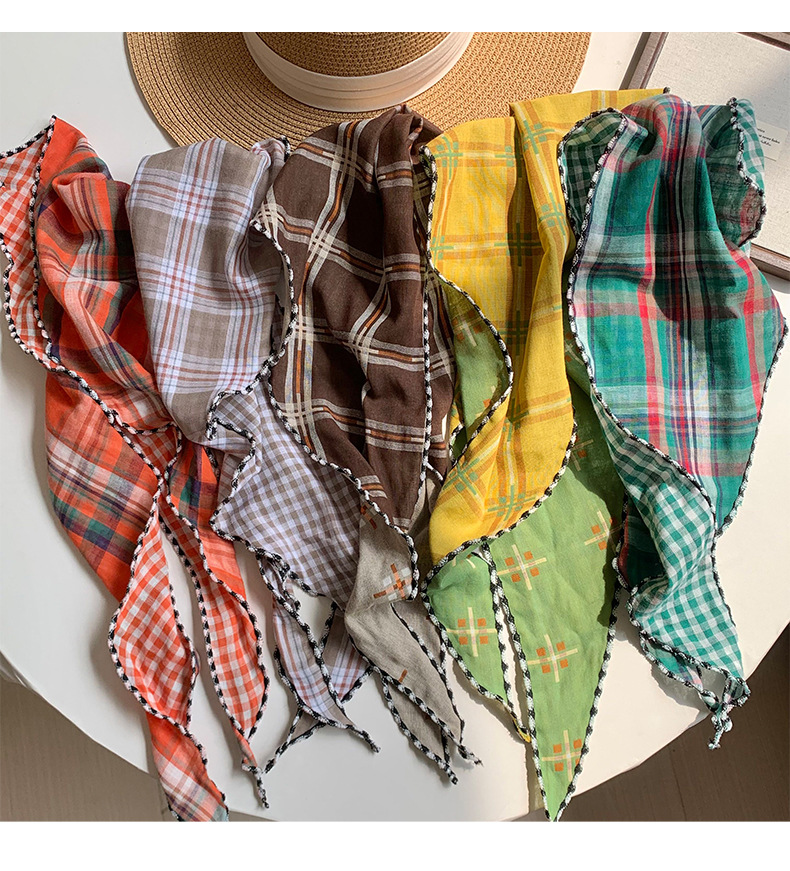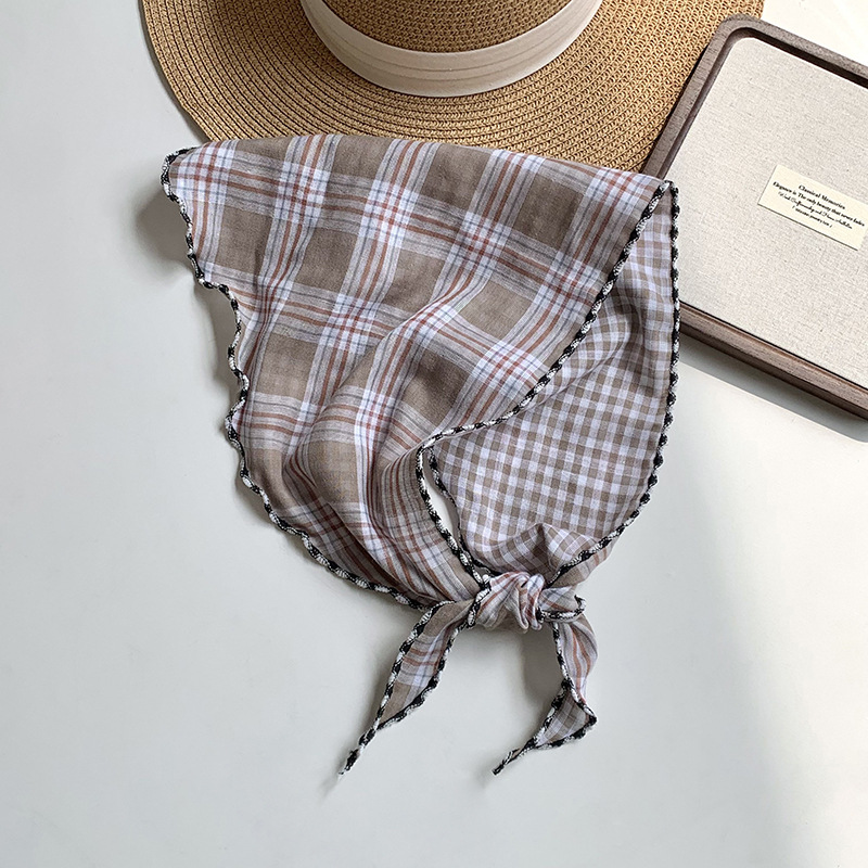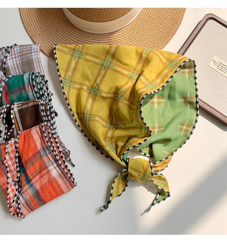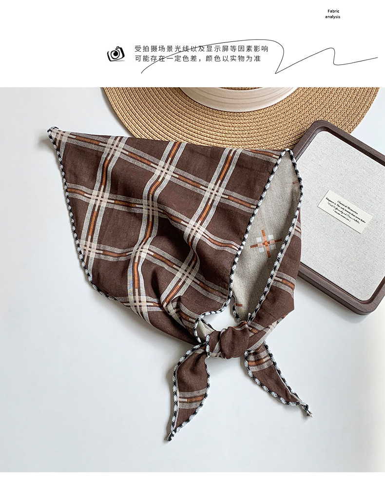 삼각형 스카프 스카프 여성 한국 스타일 복고풍 패션 작은 스카프 양면 신선한 스타일 체크 무늬 모리 스타일 헤드 스카프 헤드웨어
