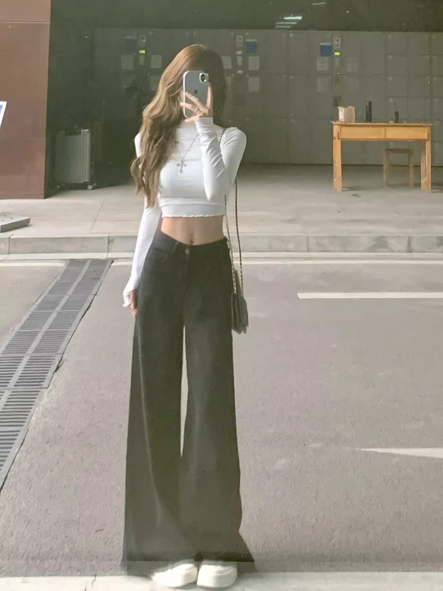 아메리칸 스타일 레트로 높은 허리 넓은 다리 청바지 여성 여름 새로운 느슨한 슬림 룩 용량 블랙 모피 가장자리 바지스토어 가기