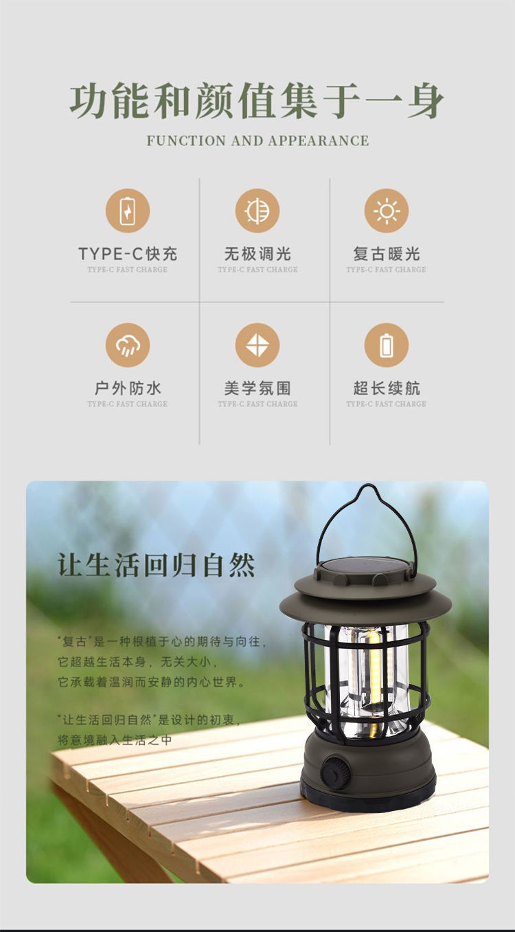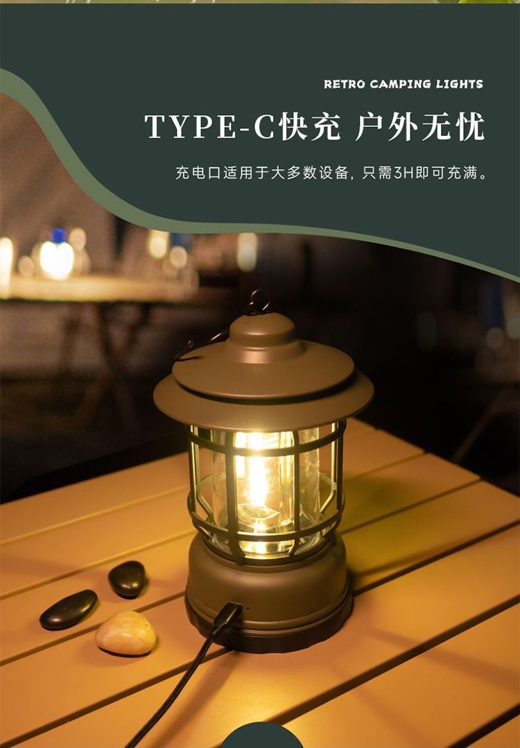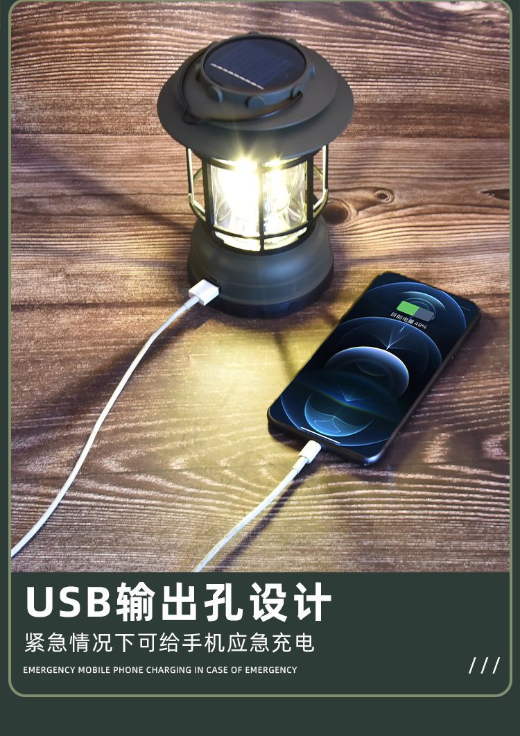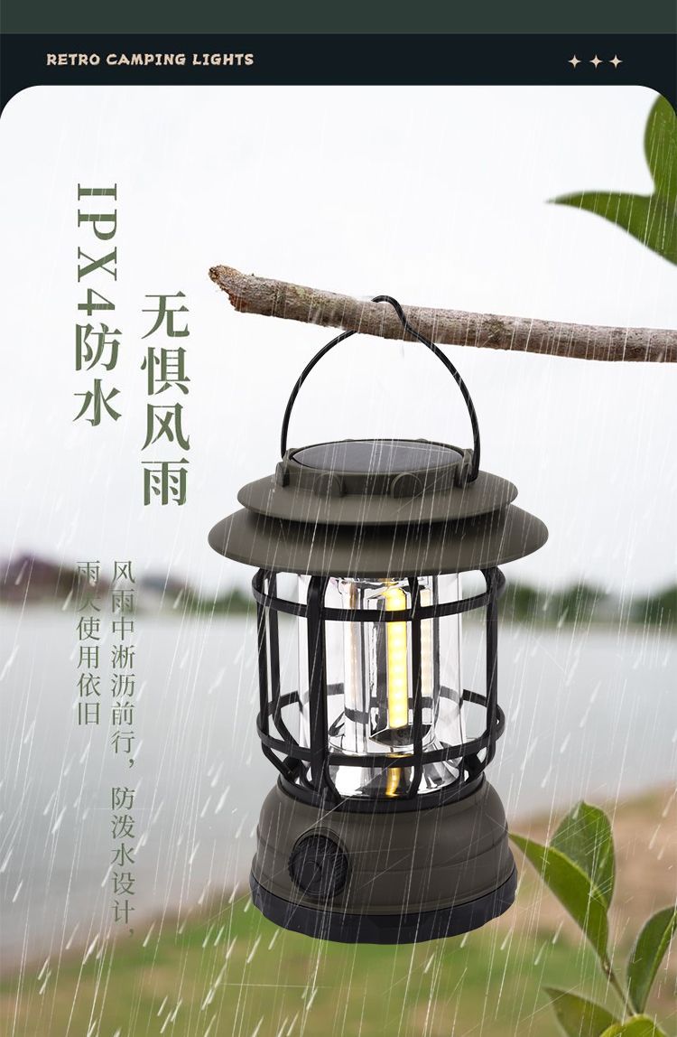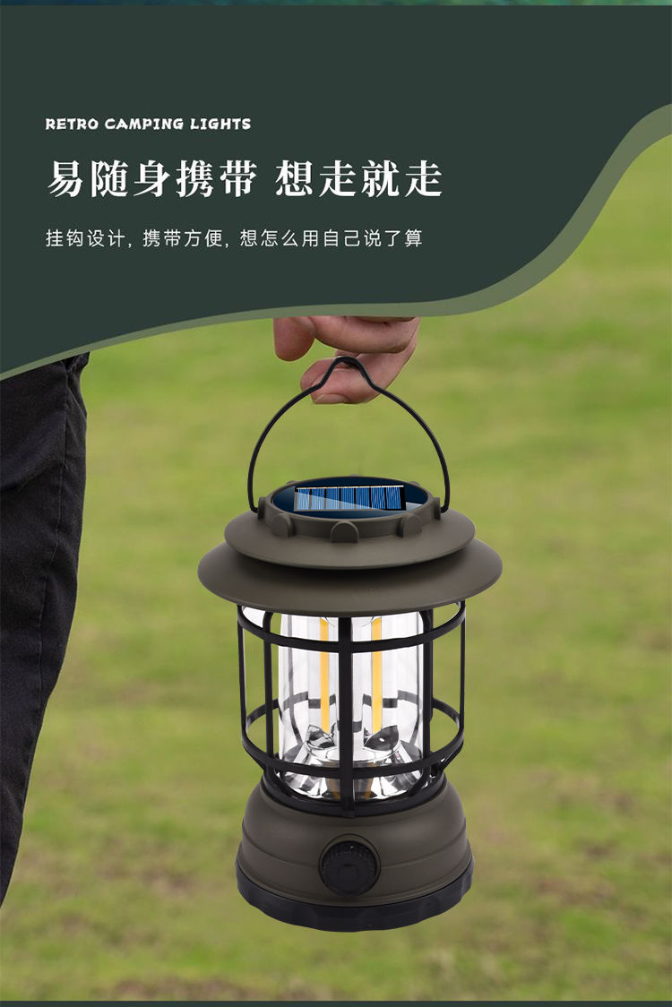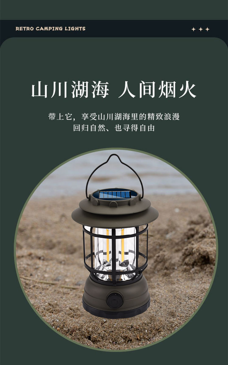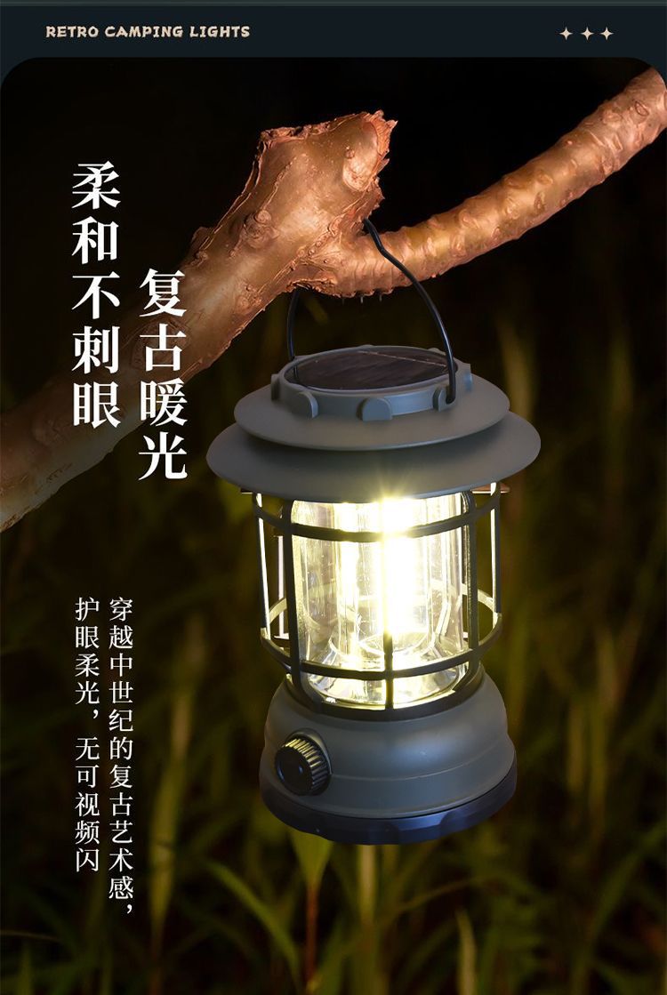 캠핑 조명 야외 캠핑 조명 멀티 텐트 조명 복고풍 태양 전지 정원 조명 충전식 캠프 랜턴