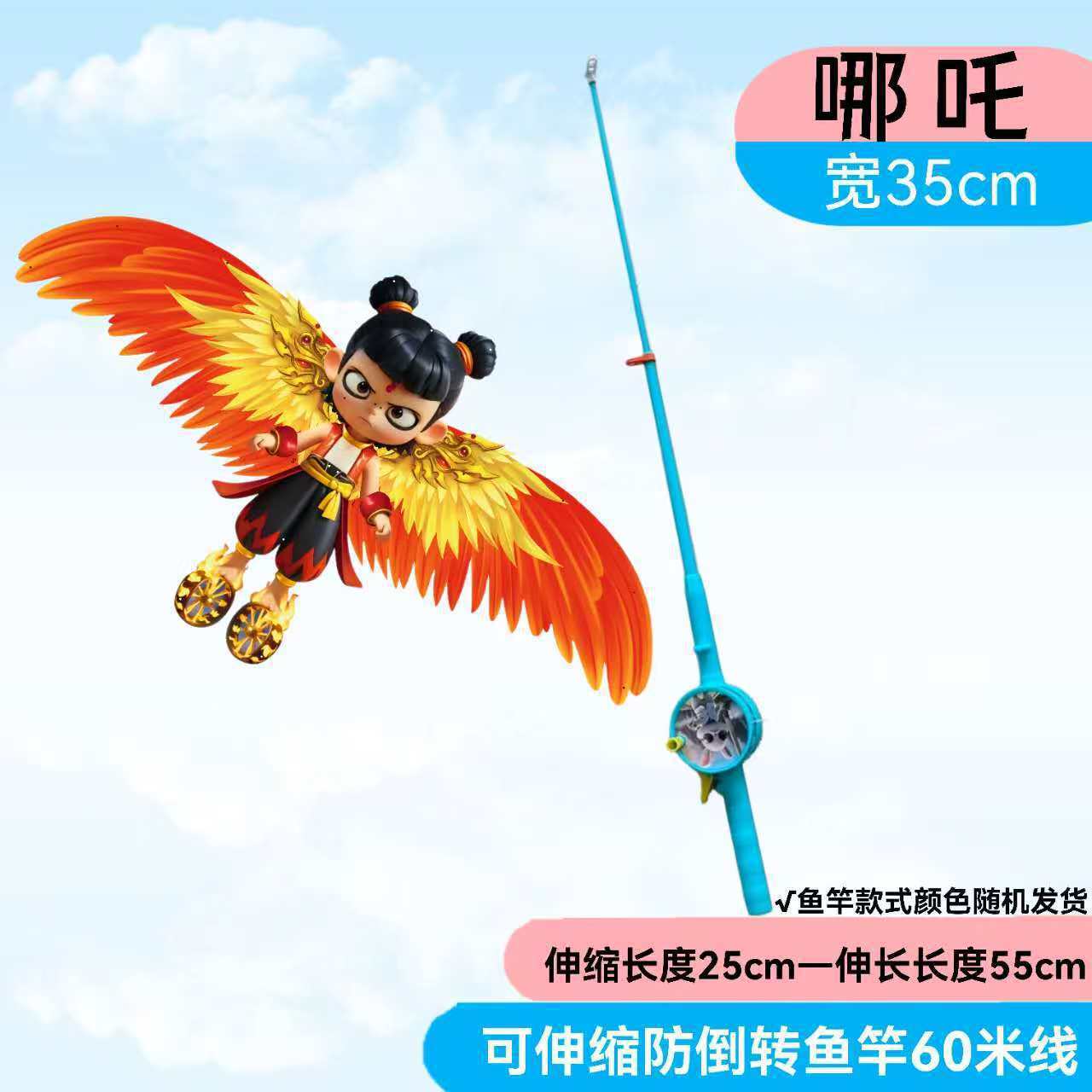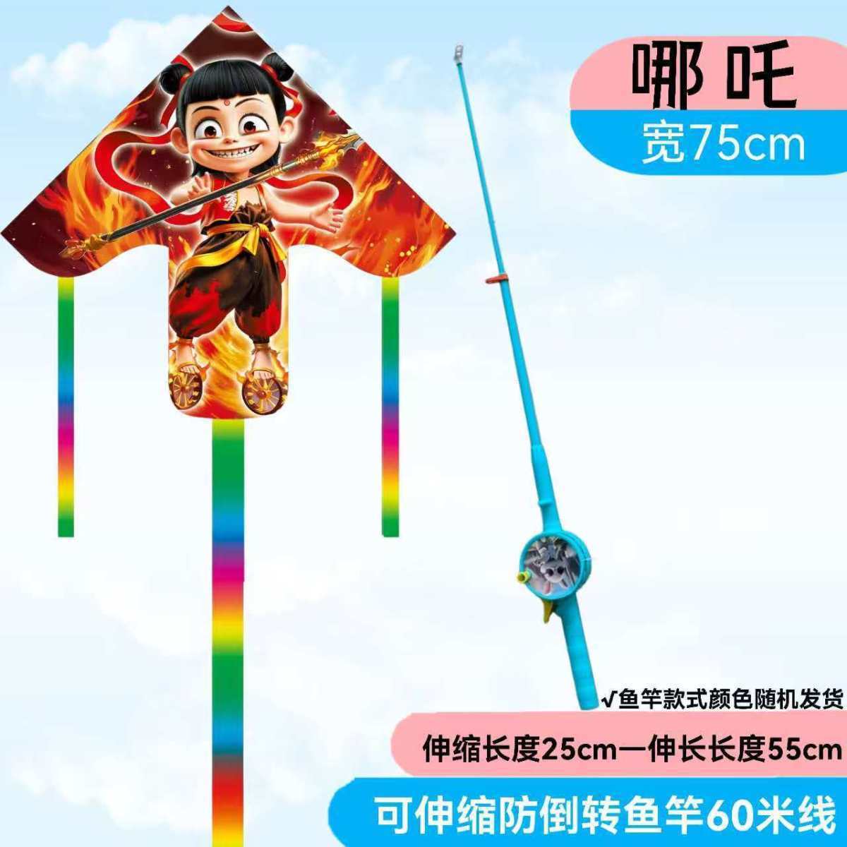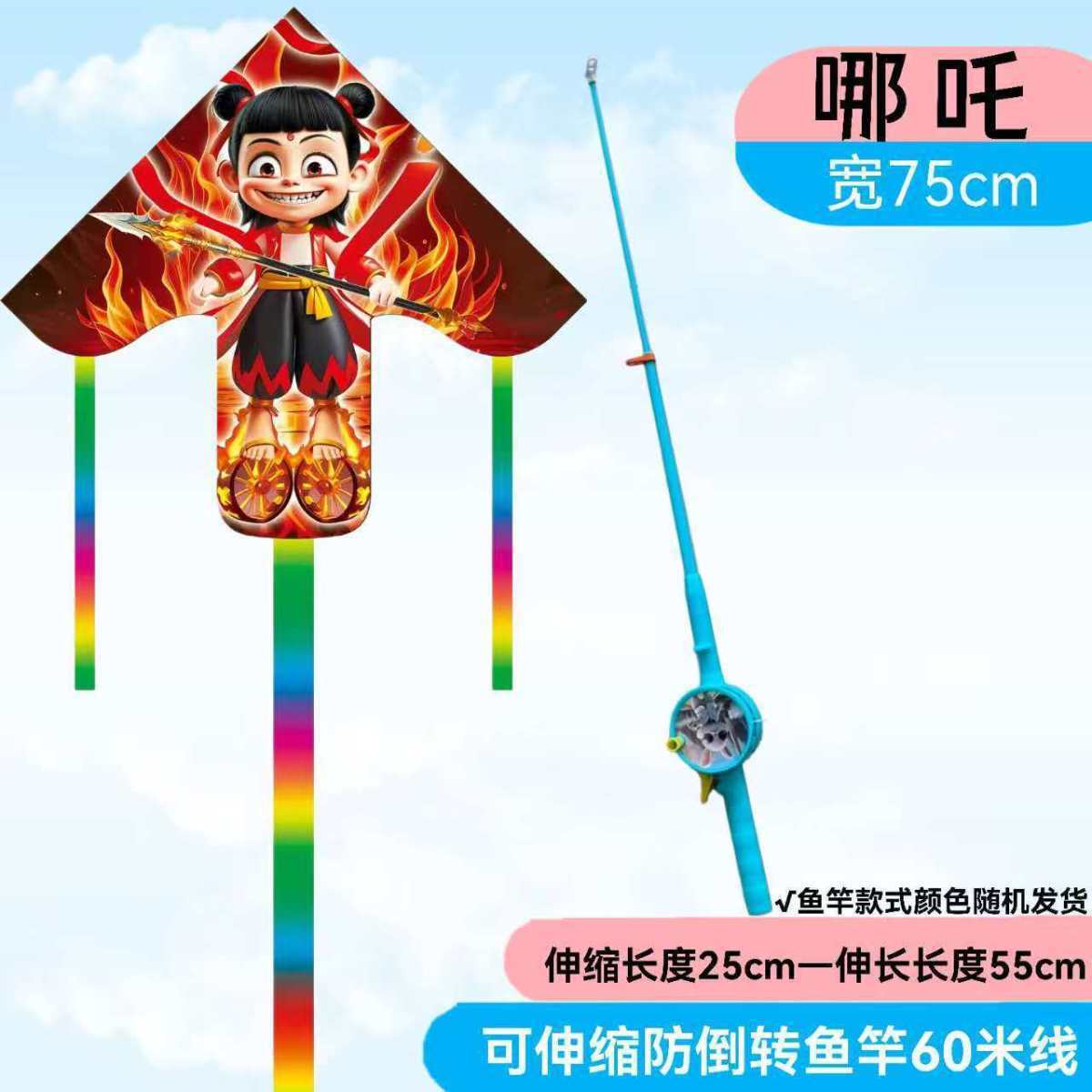 낚싯대 낚싯대 Nezha 새로운 연 2025 어린이 장난감 떠 다니는 꼬리 동적 연 휴대용 미니