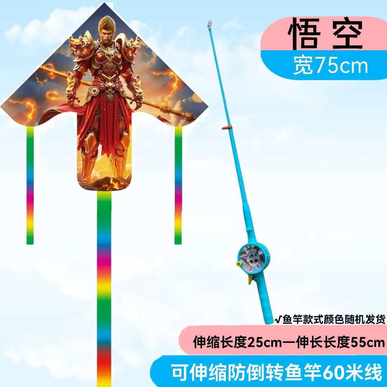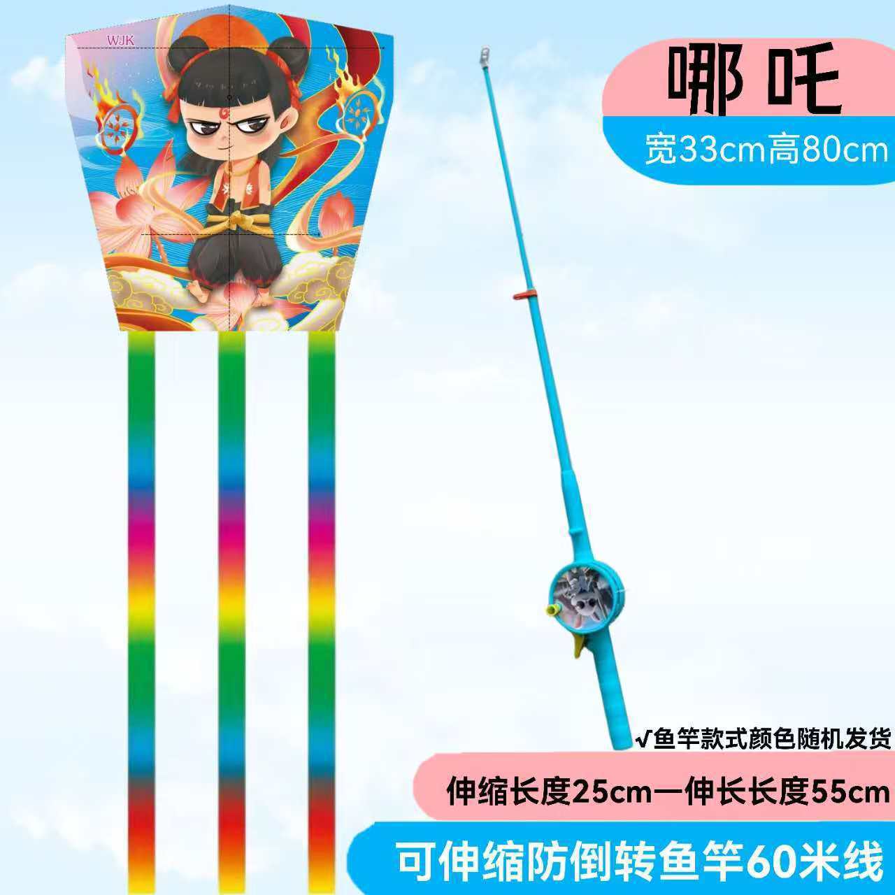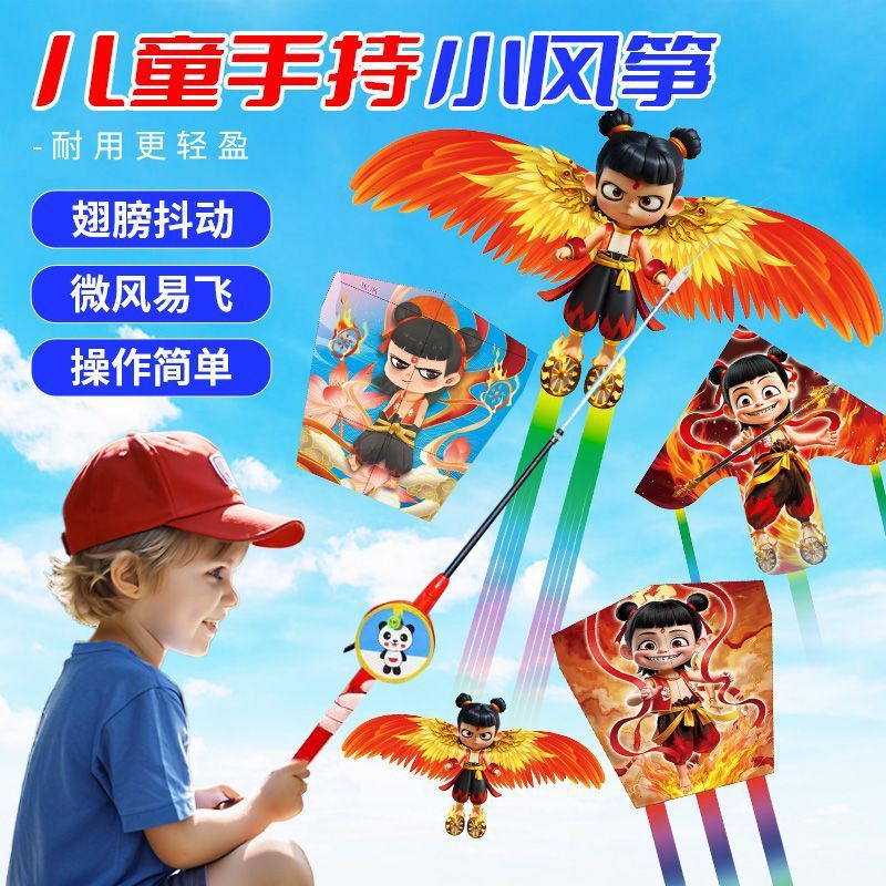 낚싯대 낚싯대 Nezha 새로운 연 2025 어린이 장난감 떠 다니는 꼬리 동적 연 휴대용 미니