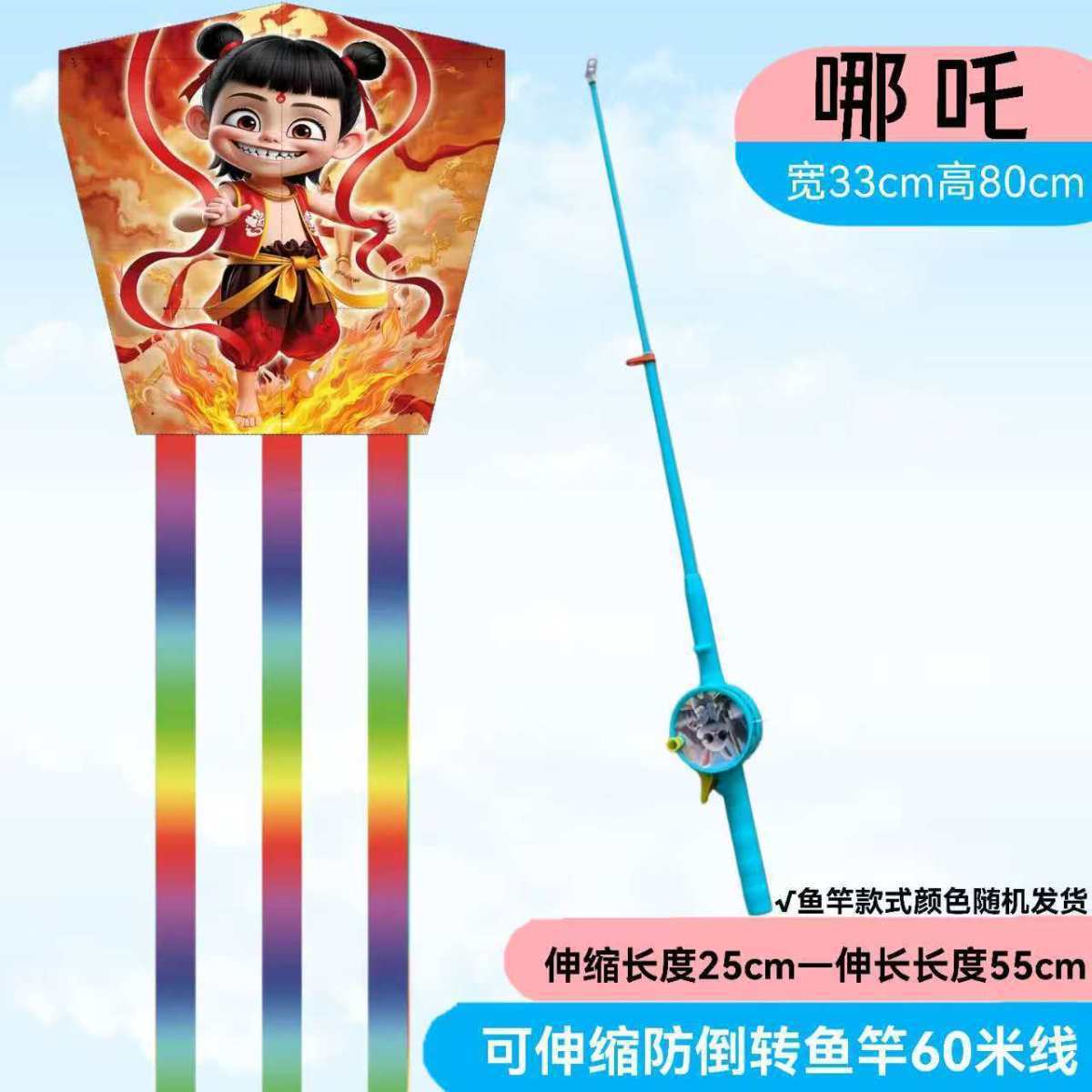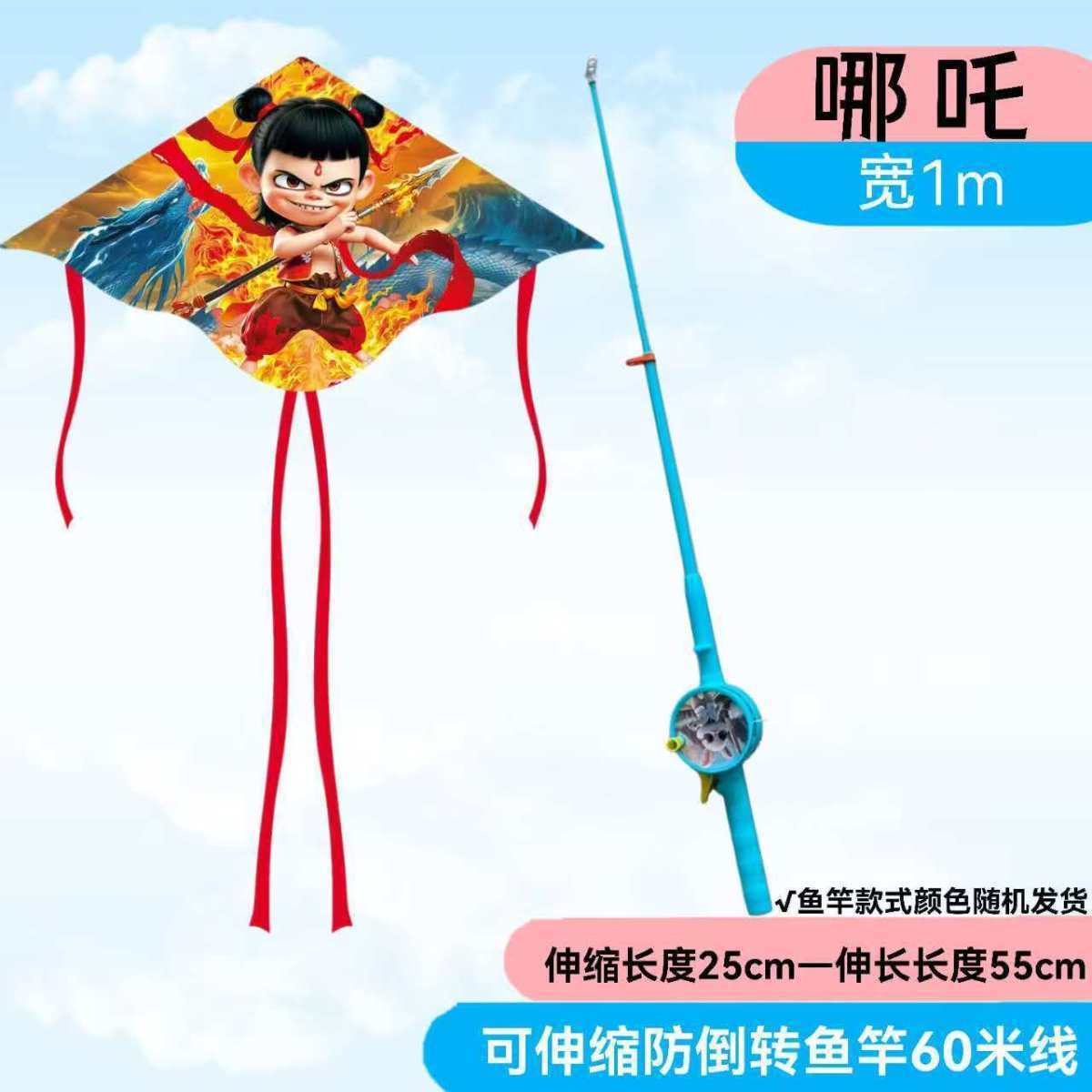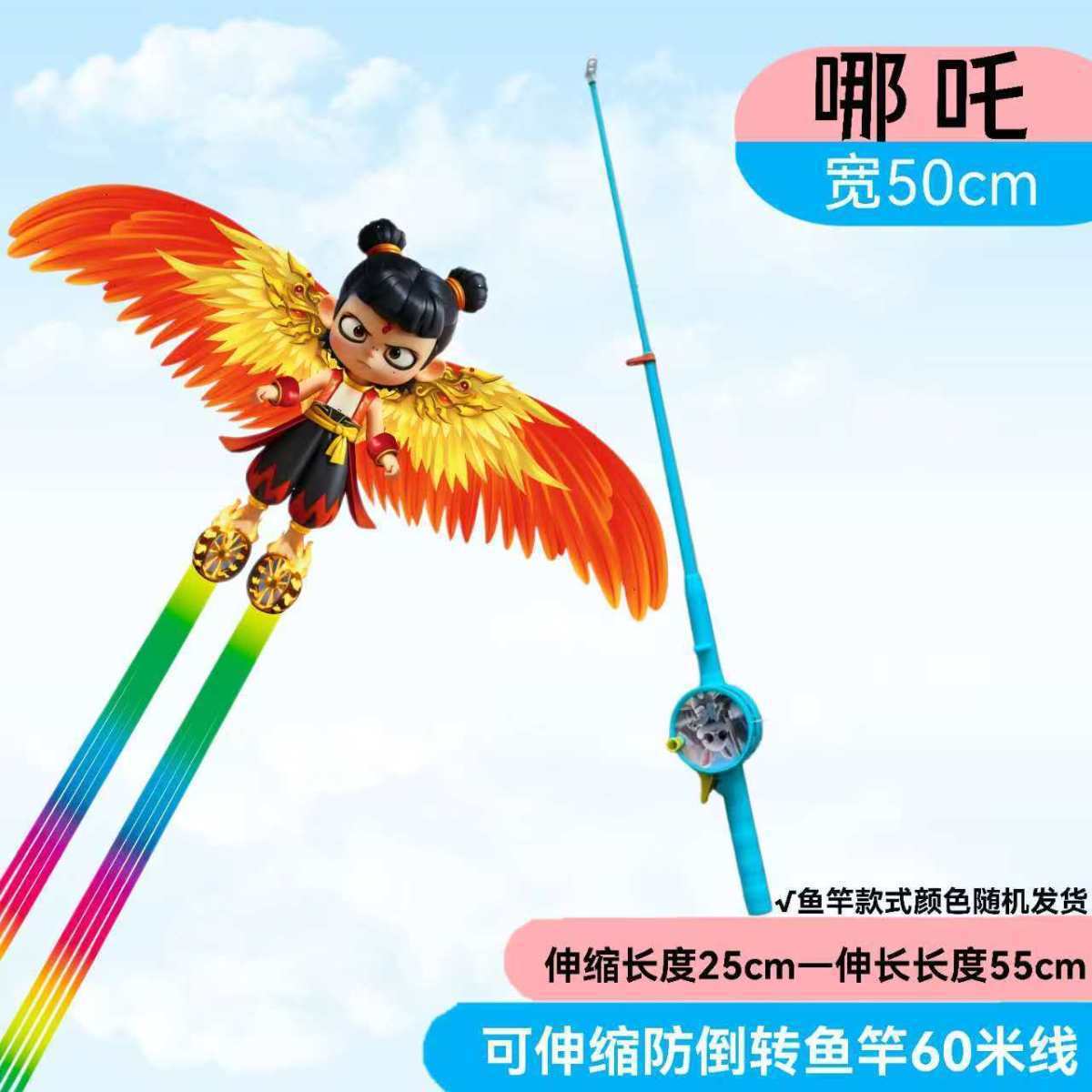 낚싯대 낚싯대 Nezha 새로운 연 2025 어린이 장난감 떠 다니는 꼬리 동적 연 휴대용 미니스토어 가기