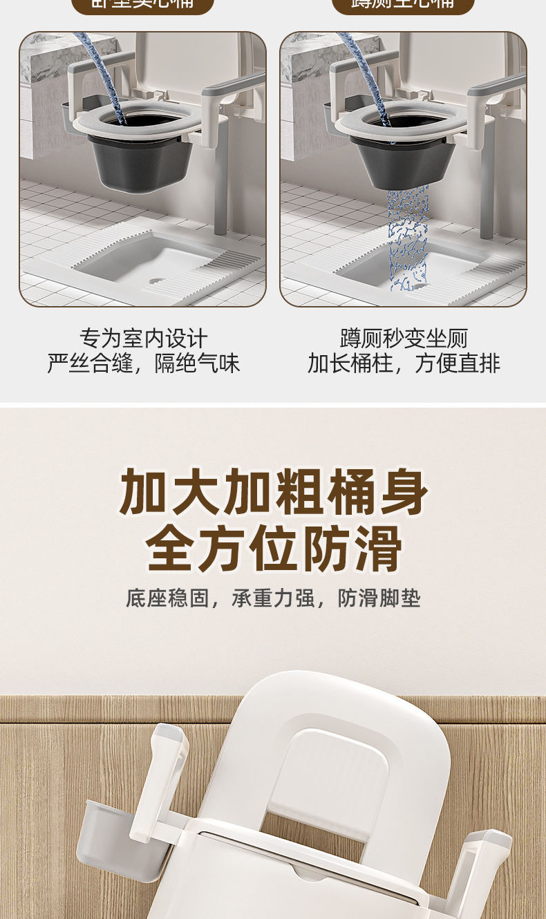 • 쪼그리고 앉는 변기용 속이 빈 양동이 + 높이 조절 다리