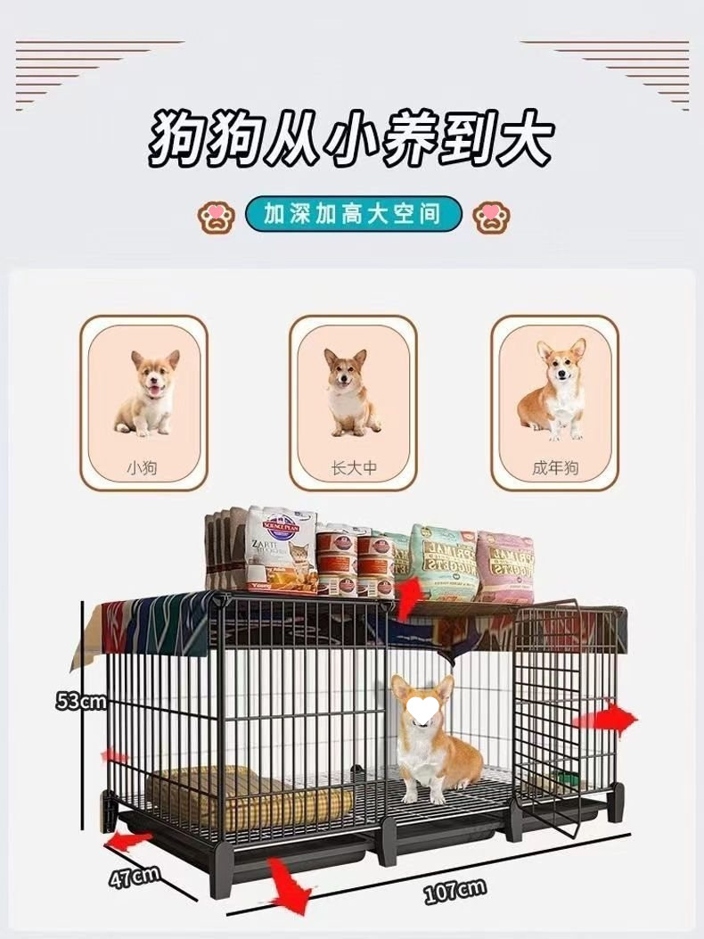 개 케이지 작은 개 Teddy Bome Corgi 중간 개 실내 가구 애완 동물 개 고양이 케이지 화장실 분리스토어 가기