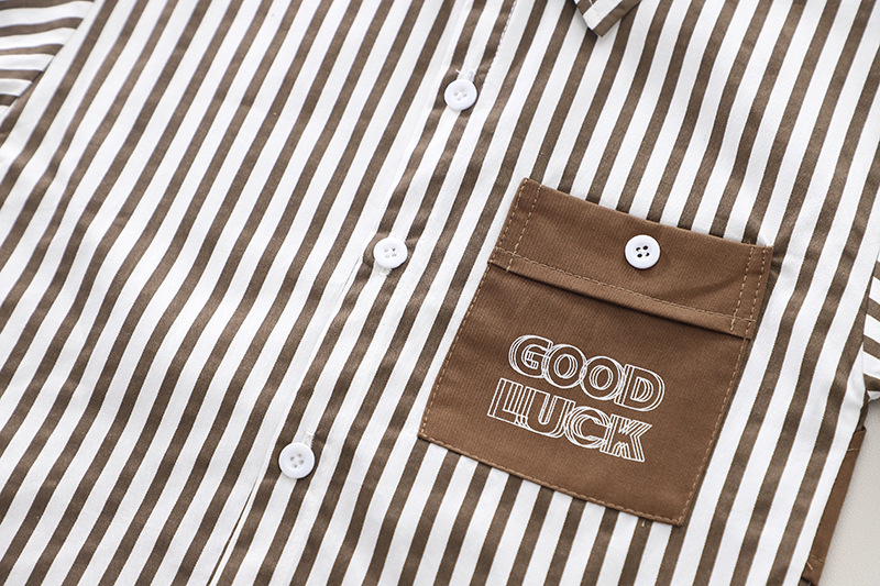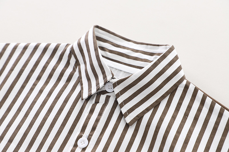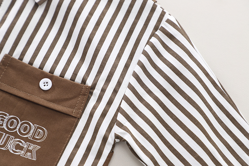 봄 세트 2025 봄과 가을 소년 어린이 새로운 어린이 서양식 세로 스트립 편지 셔츠 긴 소매 3 종 세트스토어 가기