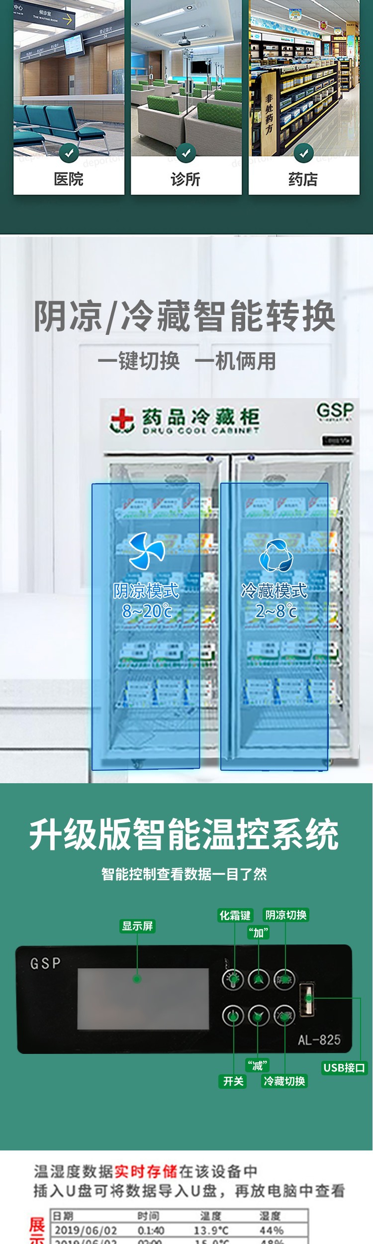 약물 그늘 내각 새로운 GSP 인증 작은 냉장고 싱글 더블 3 도어 약국 의료 냉장고 유리 디스플레이