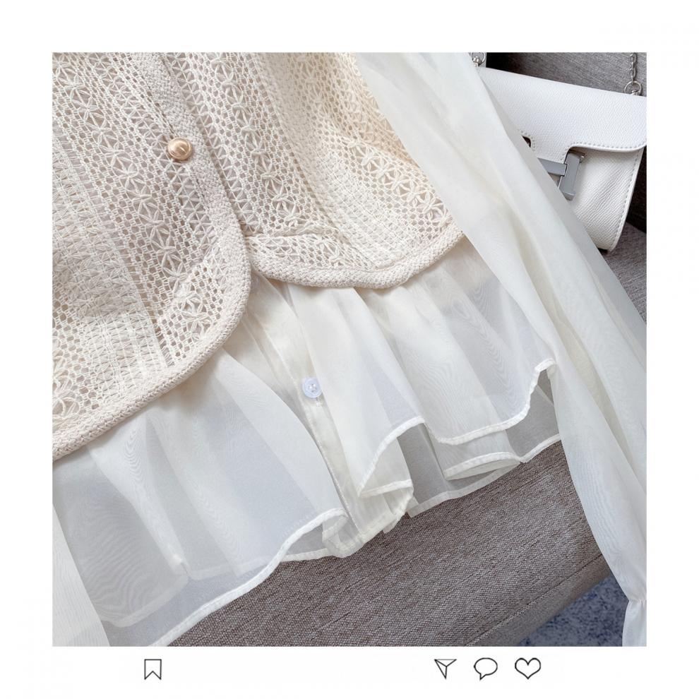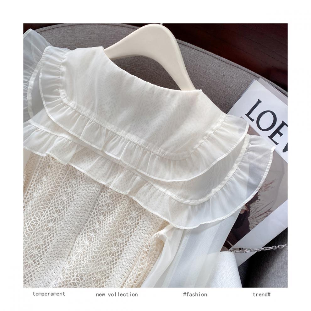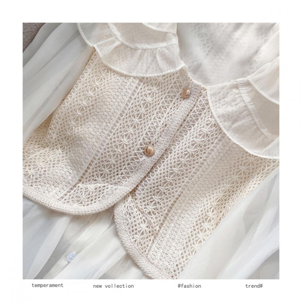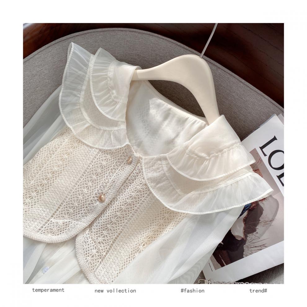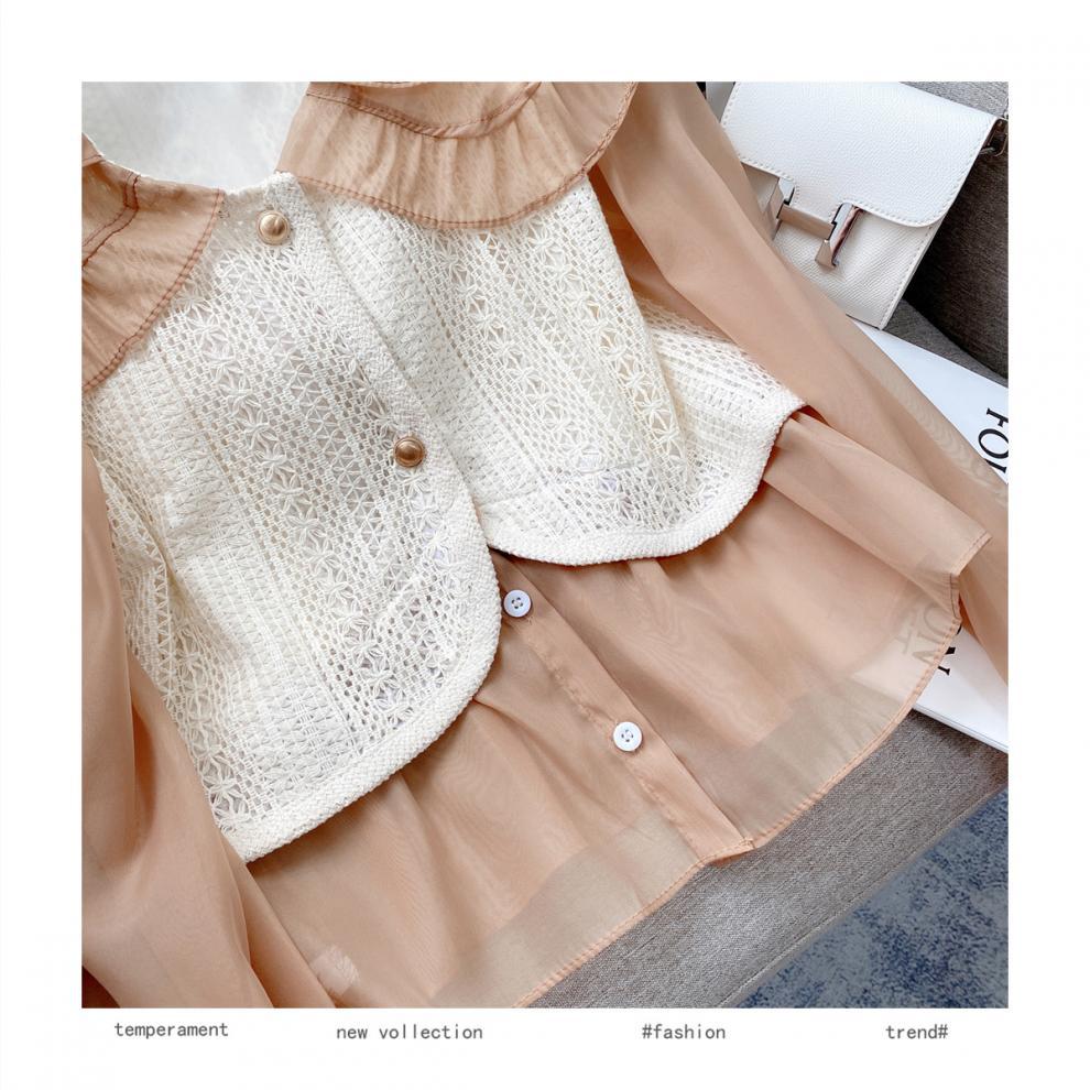봄과 가을 프랑스 달콤한 더블 레이스 인형 칼라 셔츠 여성용 쉬폰 긴 소매 가짜 투피스 스티칭 조끼 탑