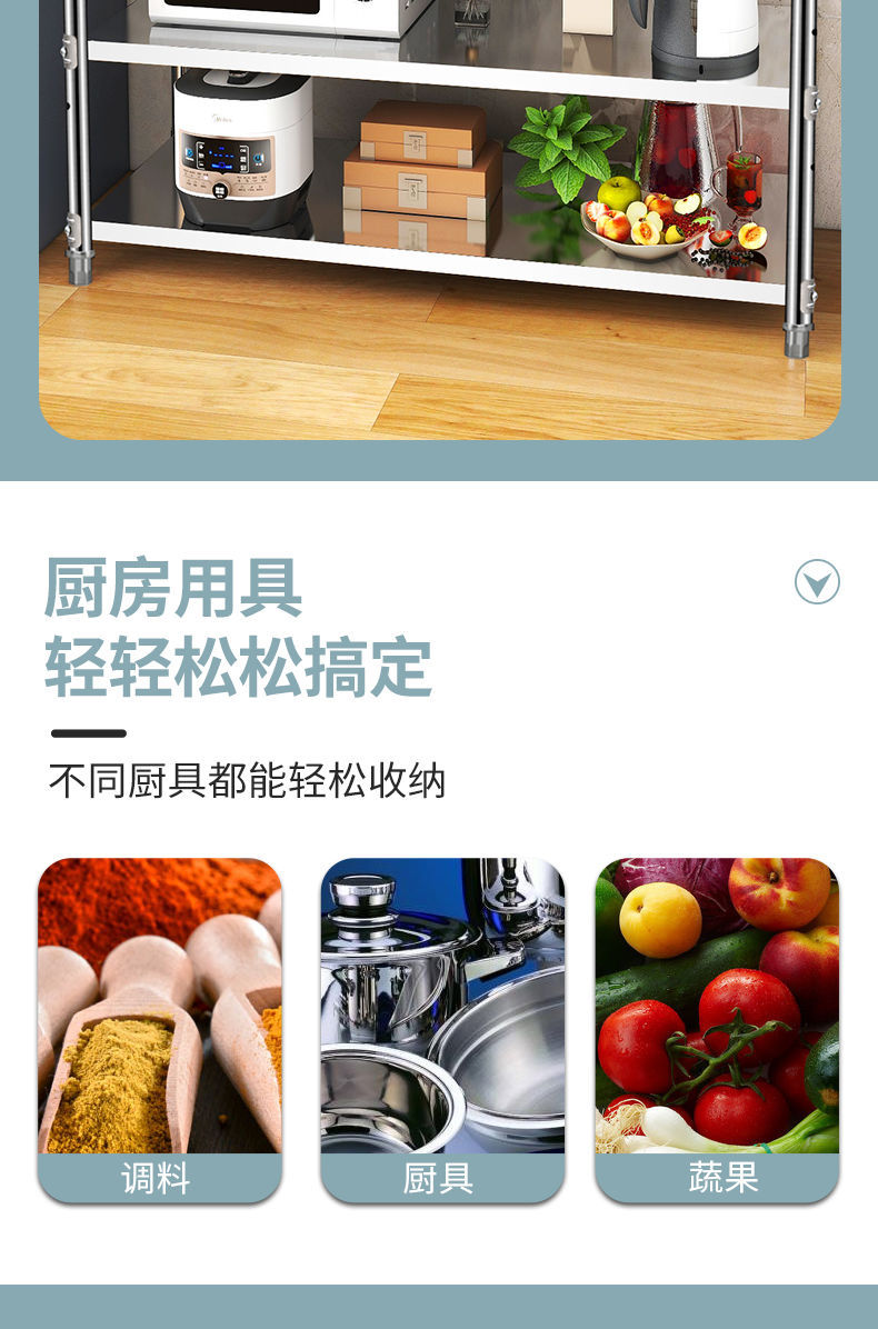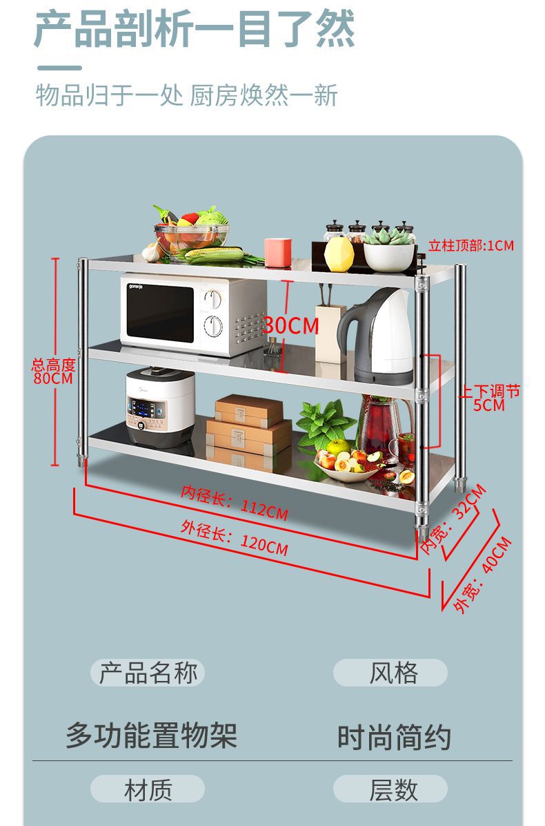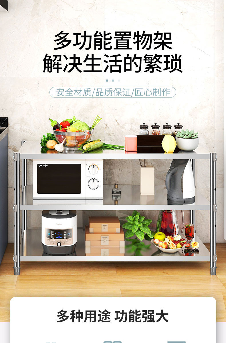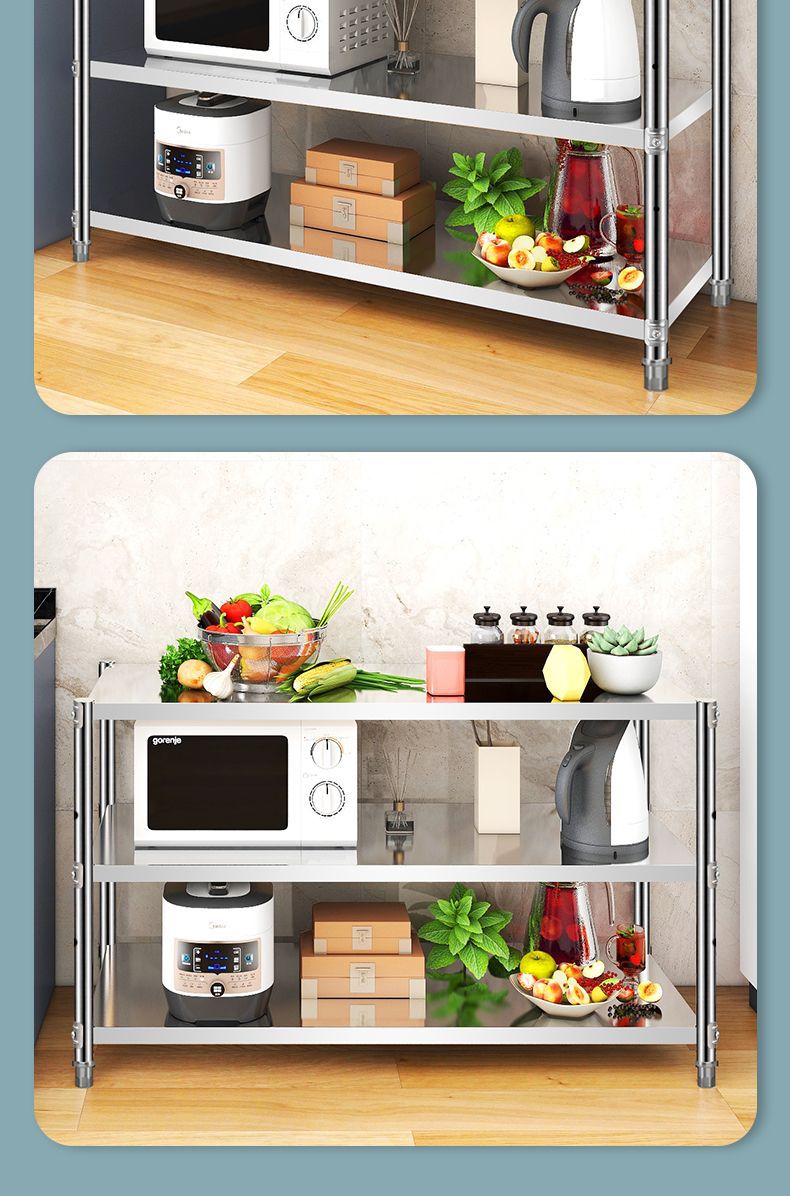 스테인레스 스틸 3 층 주방 랙 바닥 서 다층 저장 랙 전자레인지 오븐 다기능 스토리지 랙 새로운스토어 가기