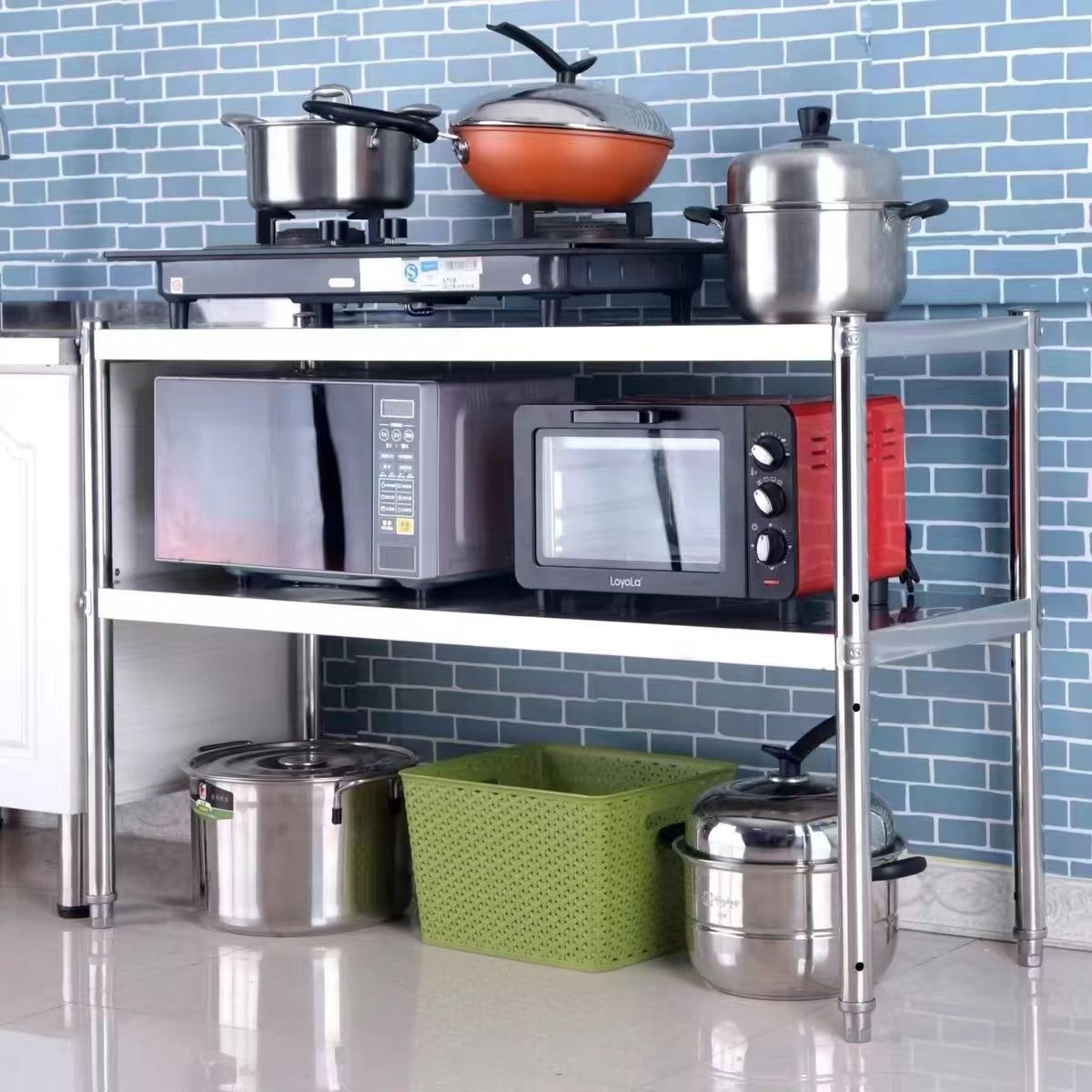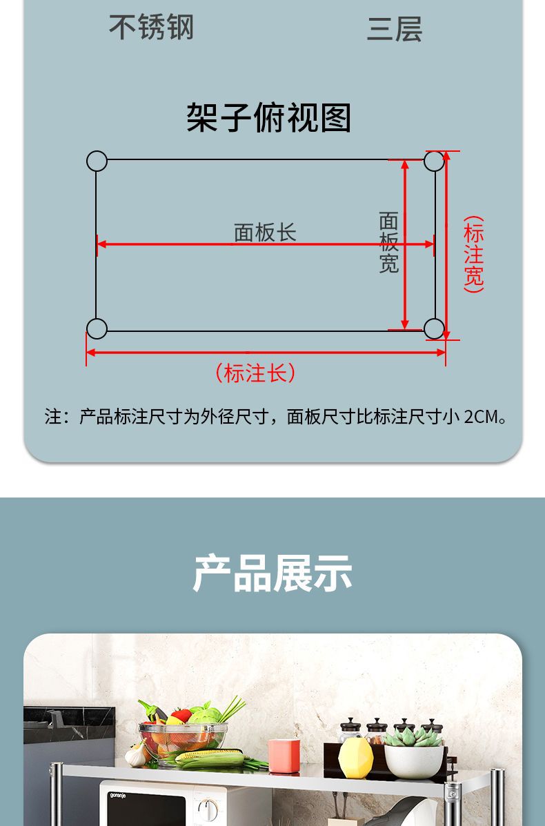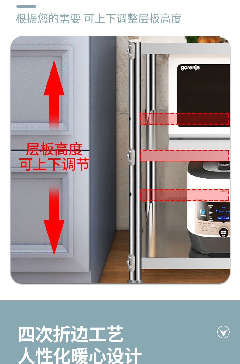 스테인레스 스틸 3 층 주방 랙 바닥 서 다층 저장 랙 전자레인지 오븐 다기능 스토리지 랙 새로운스토어 가기