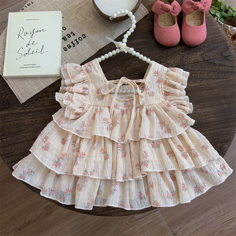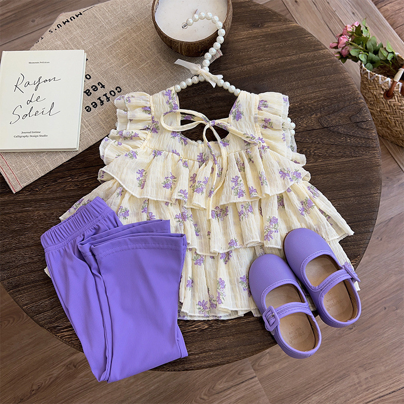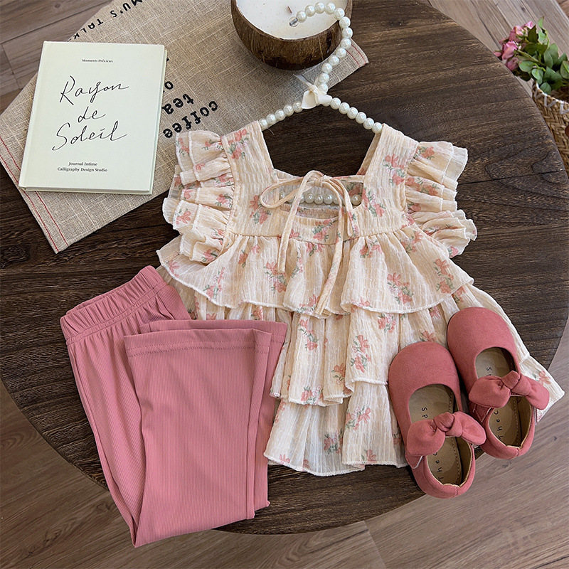 2025 년 여름 새로운 어린이 꽃 서스펜더 최고 여름 소녀 조끼 여름 소녀 아기 여름 도매