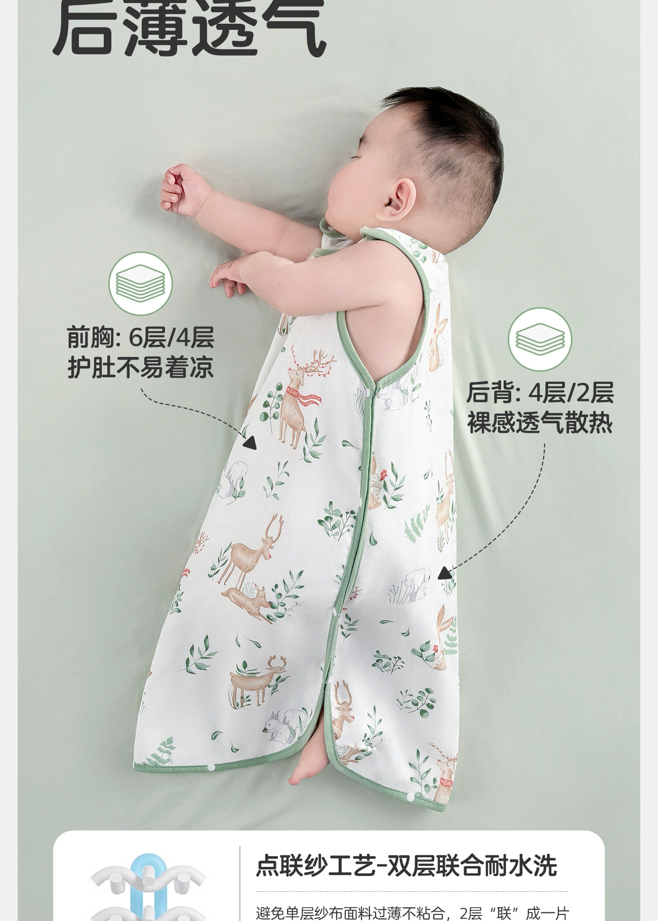 Youmeng 대나무 면 아기 잠자는 가방 여름 얇은 아기 증기 킥 방지 퀼트 어린이 인공물 아이들의 잠자는 배 보호