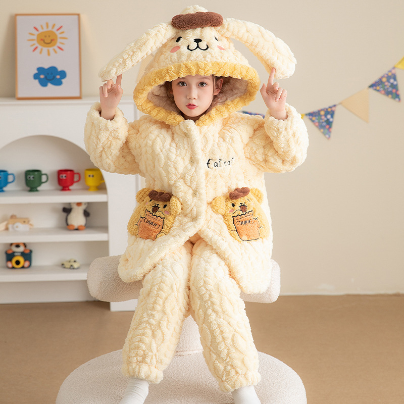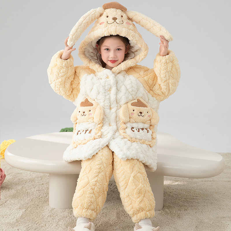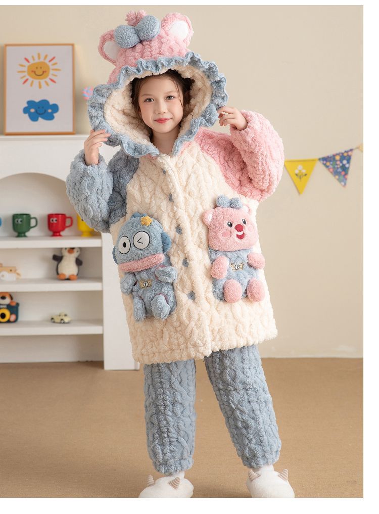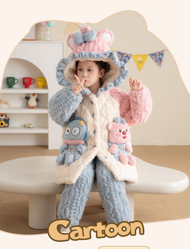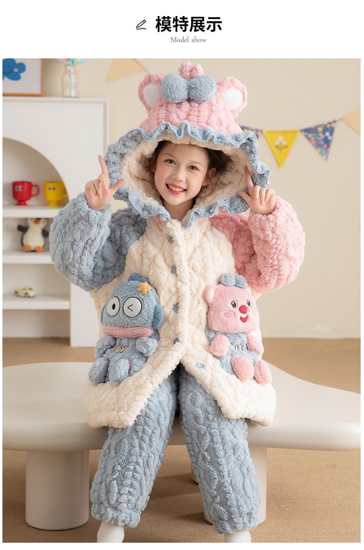 2025년 신상 여아용 겨울 잠옷 산호 벨벳 3중 누빔 아동용 여아용 플러스 벨벳 두꺼운 겨울 홈웨어스토어 가기