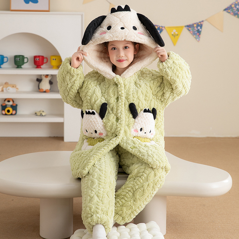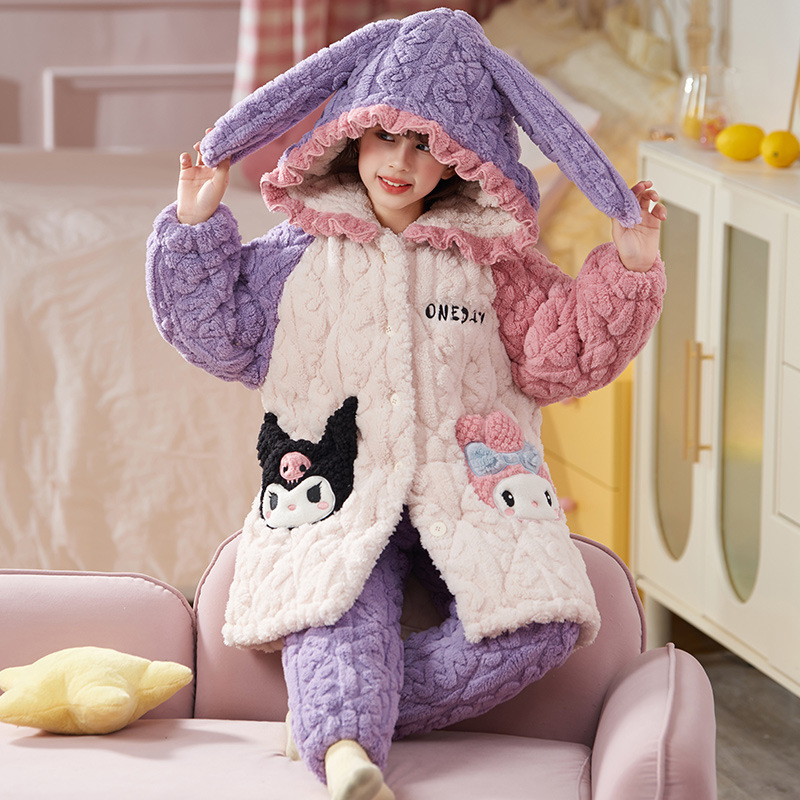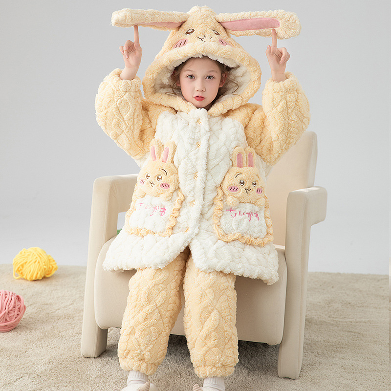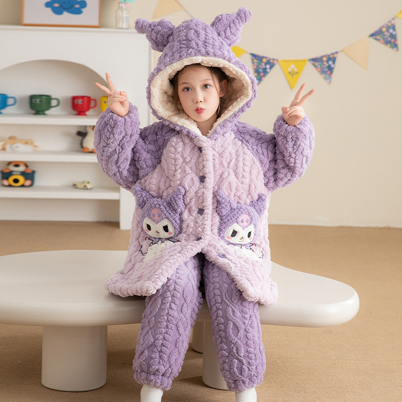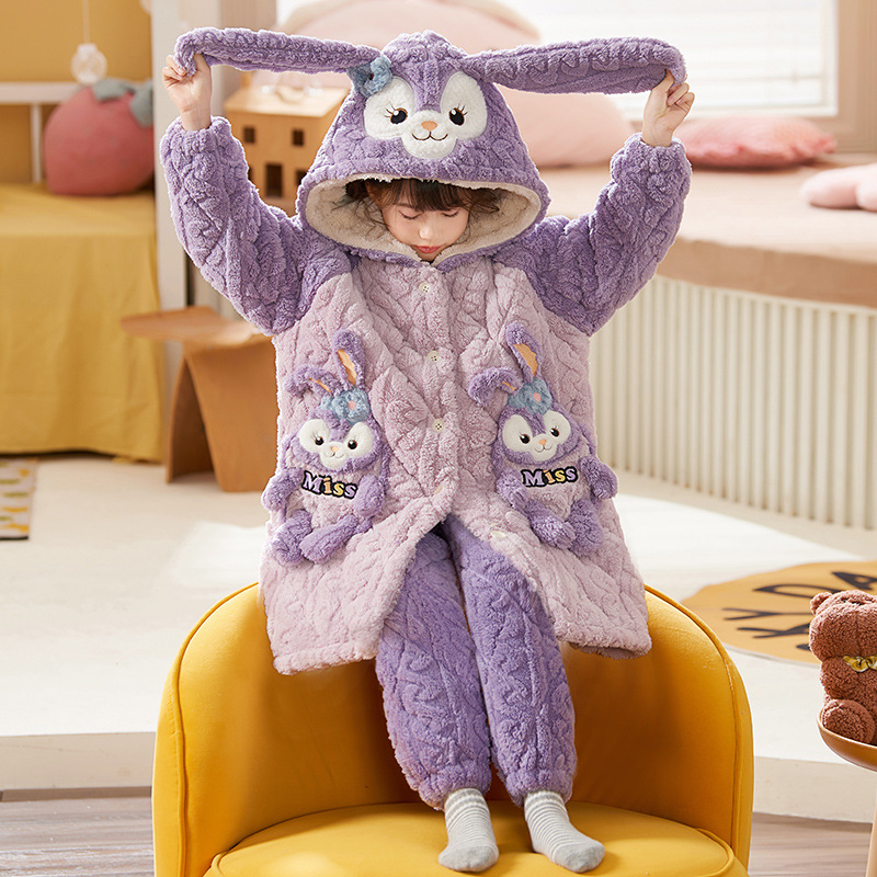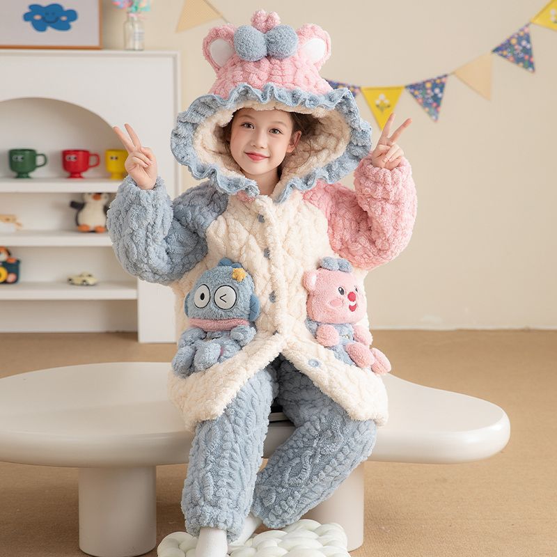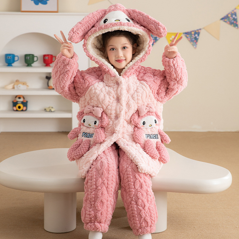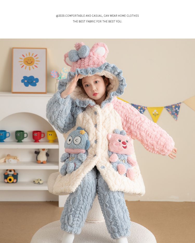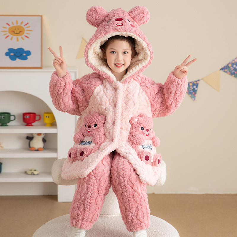 2025년 신상 여아용 겨울 잠옷 산호 벨벳 3중 누빔 아동용 여아용 플러스 벨벳 두꺼운 겨울 홈웨어